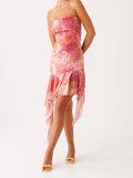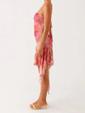 Strapless Dress for Women Fit Stylish Floral Print Ruffled Hem Sleeveless Tube Mini Dress