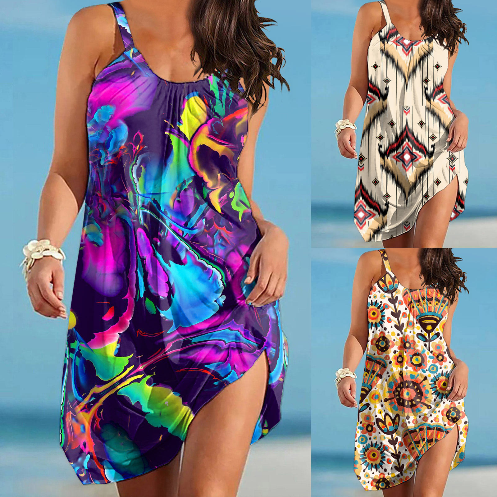 Sleeveless O-Neck Boho Cover-Up Dress for Women in Summer
