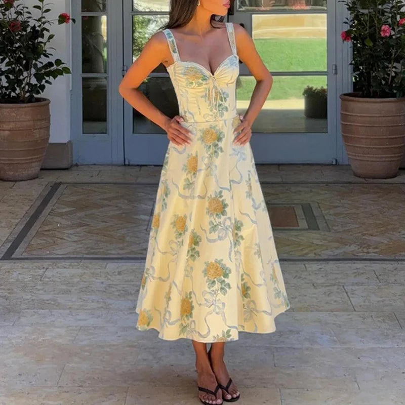 Stylish Sleeveless Resort Dress with Bow Tie and Flowing Drape