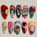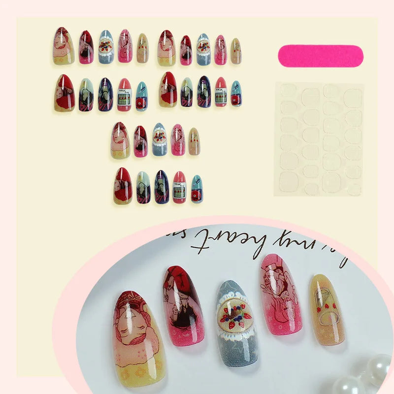 24 Early 2000s Nail Art | Vintage Graffiti Almond Press on Nail Art | Ornament for Girls