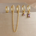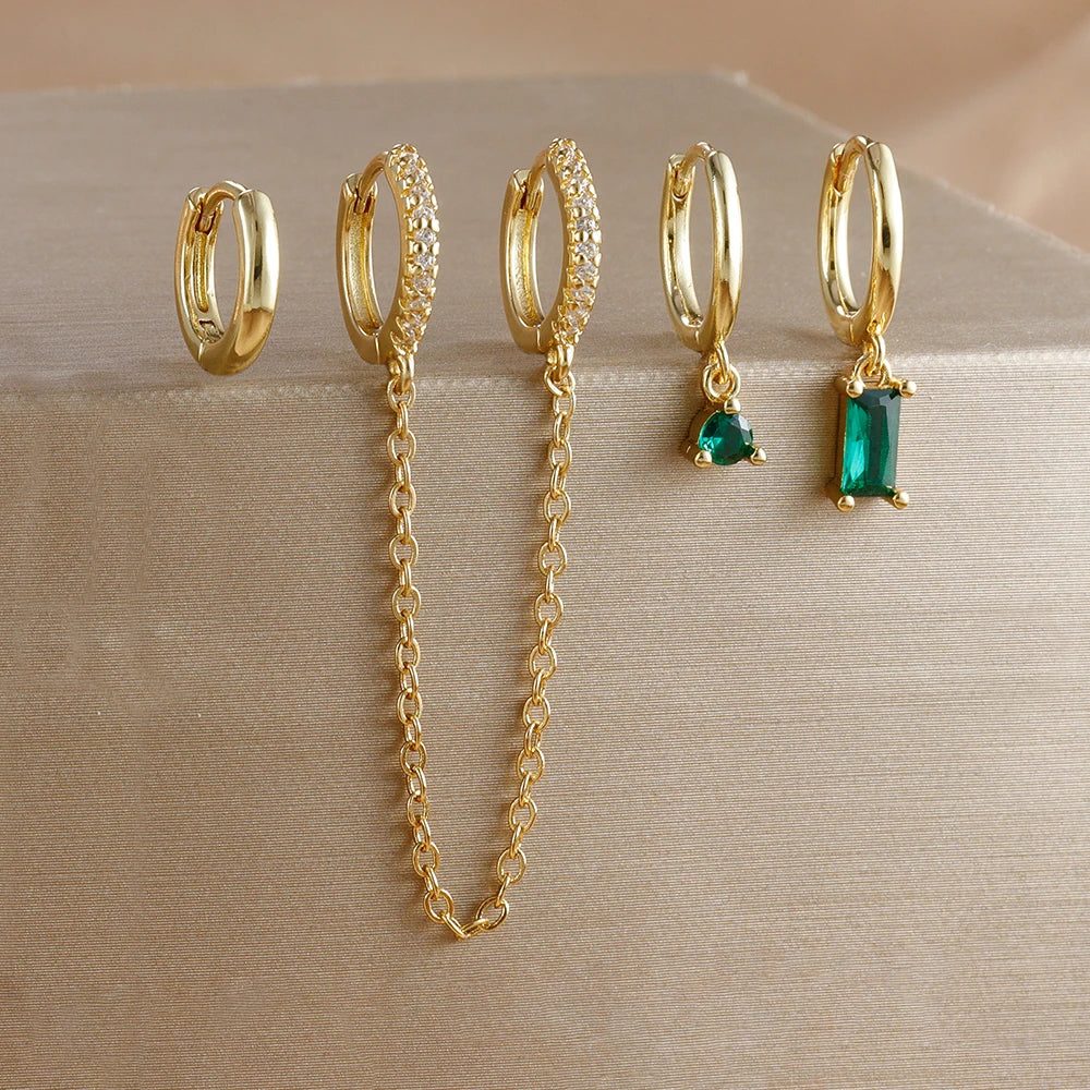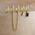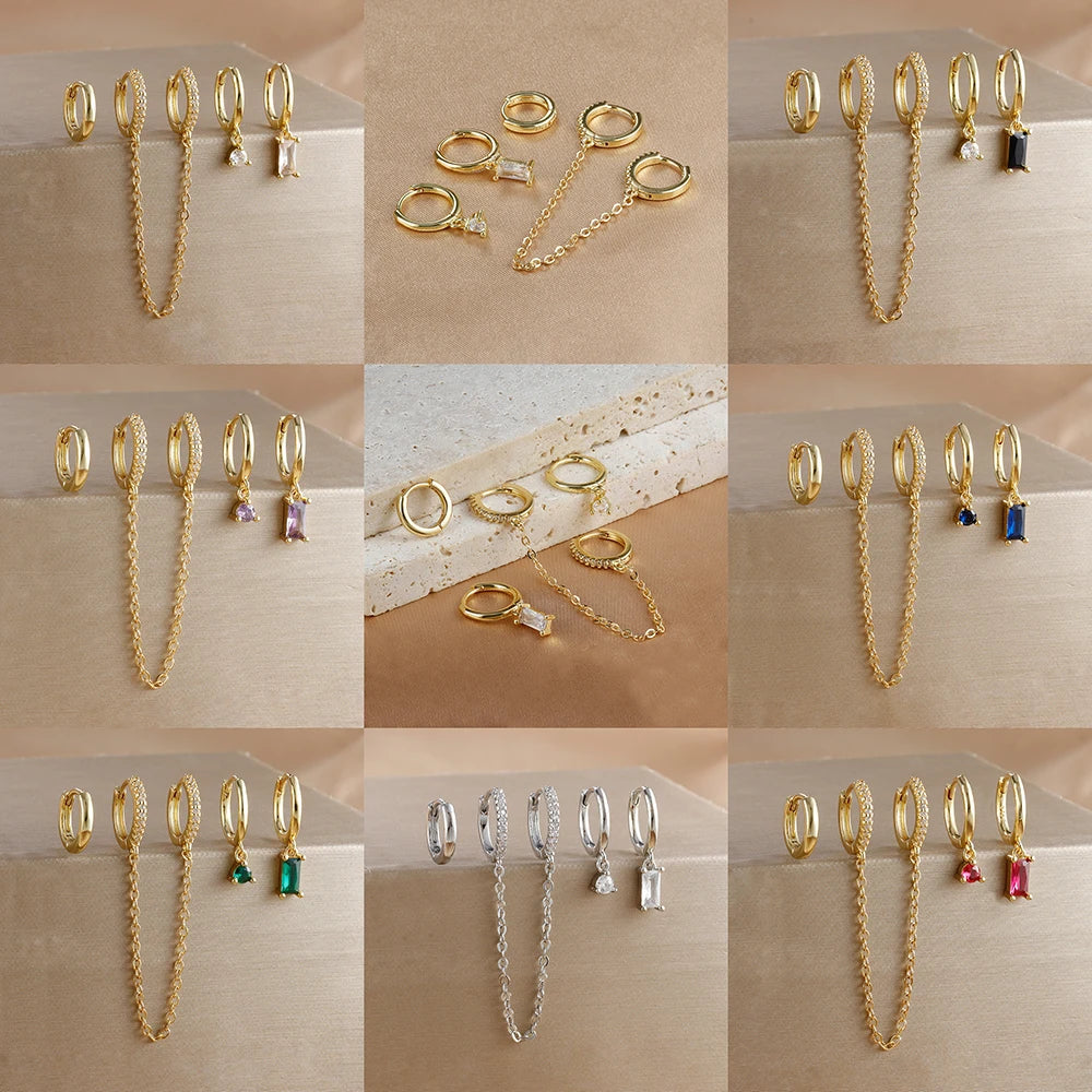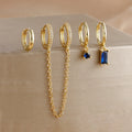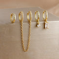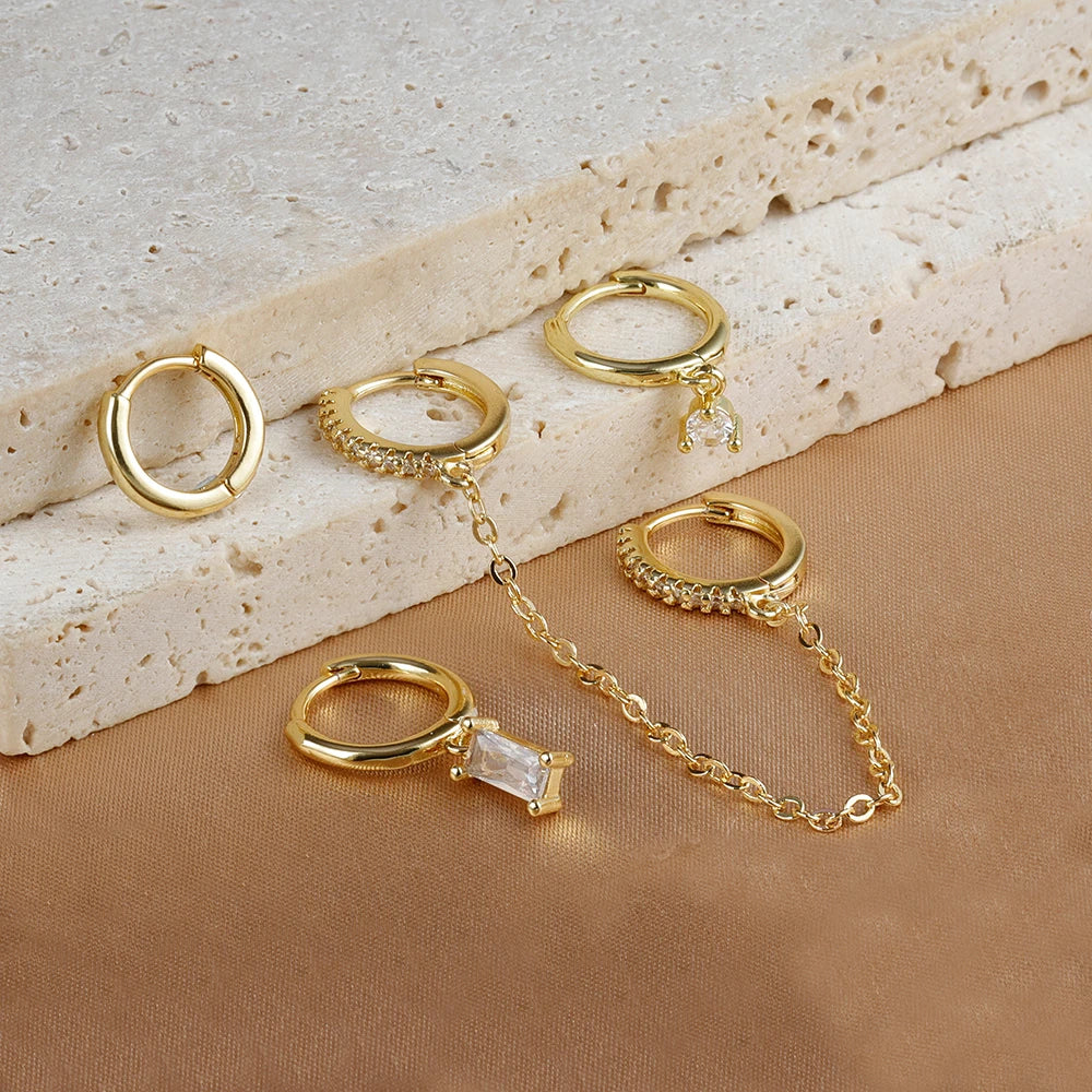 4pcs Earrings Set for Women | Two Hole Round Circle Gold Color Hoop Earring