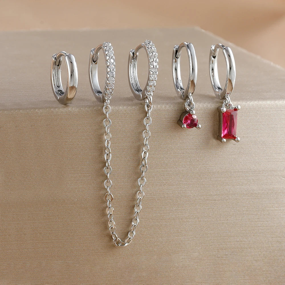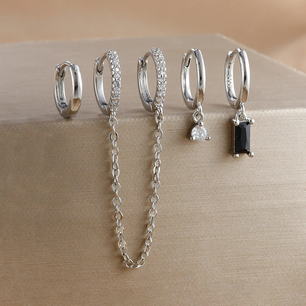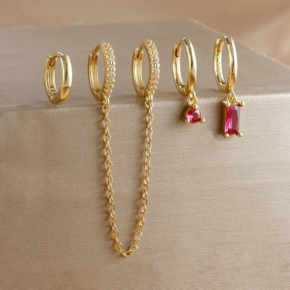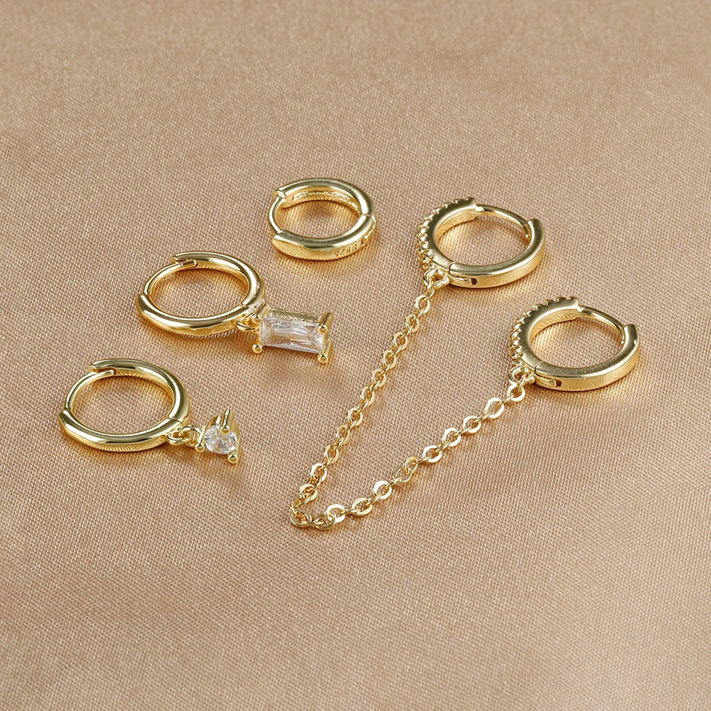 4pcs Earrings Set for Women | Two Hole Round Circle Gold Color Hoop Earring