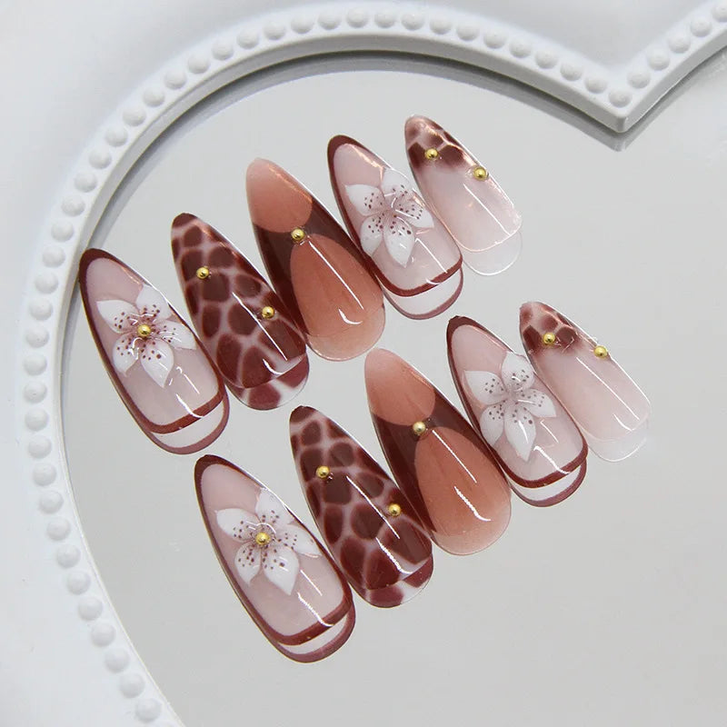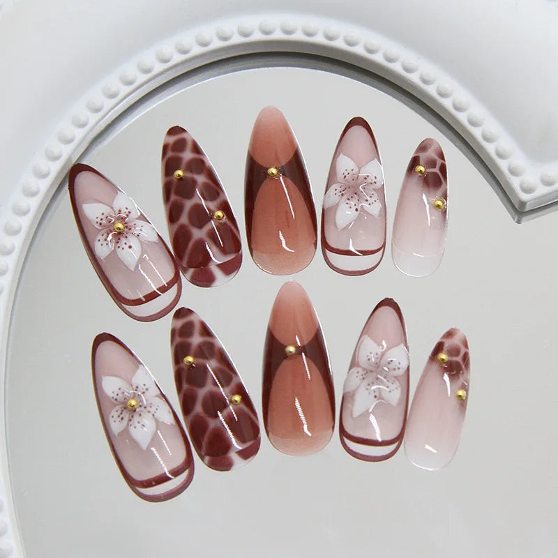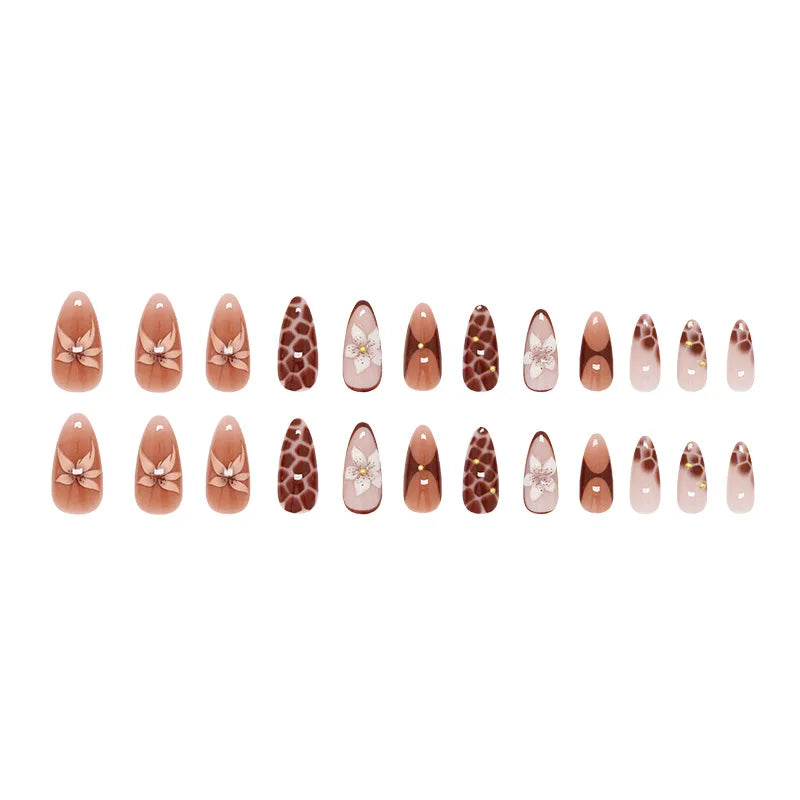 24PCS Brown Lily Flower Earth Tone Nail Colors