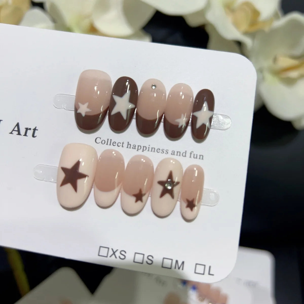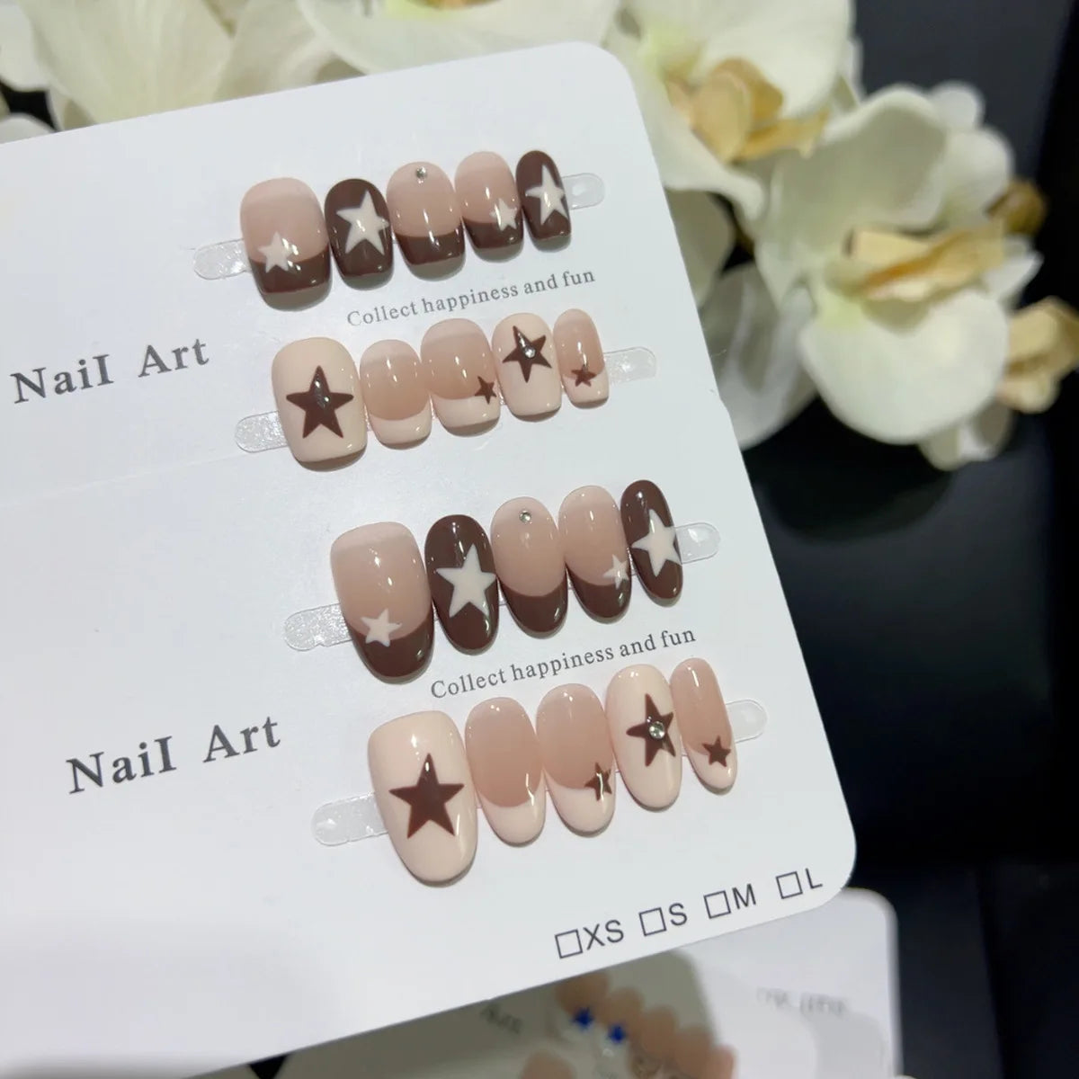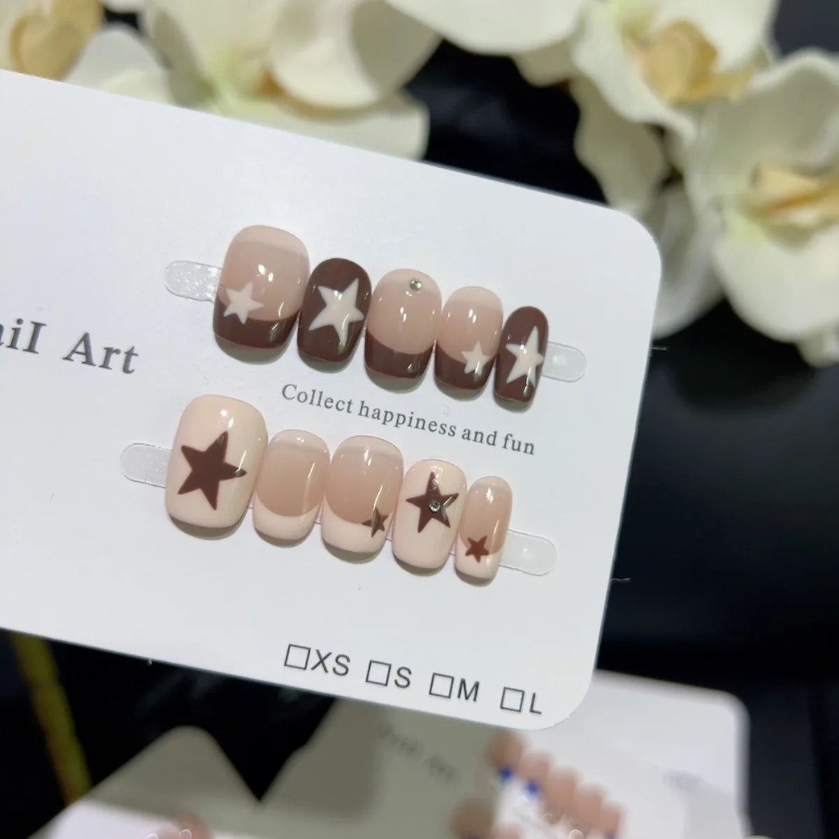 10 Easy French Tip Nails | Coffee Color Star Design Y2K Fake Nail Wearable Nail Art Tips