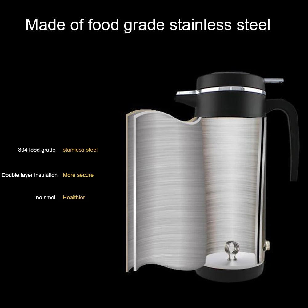 1200 ML Car Hot Kettle Car Tuck Water Heater Large Capacity 12/24 V Travel Electric Kettle Leak-Proof Design Stainless Steel Kettle Auto Shut Off Fast Boiling for Coffee Tea Drinks for Travel Home