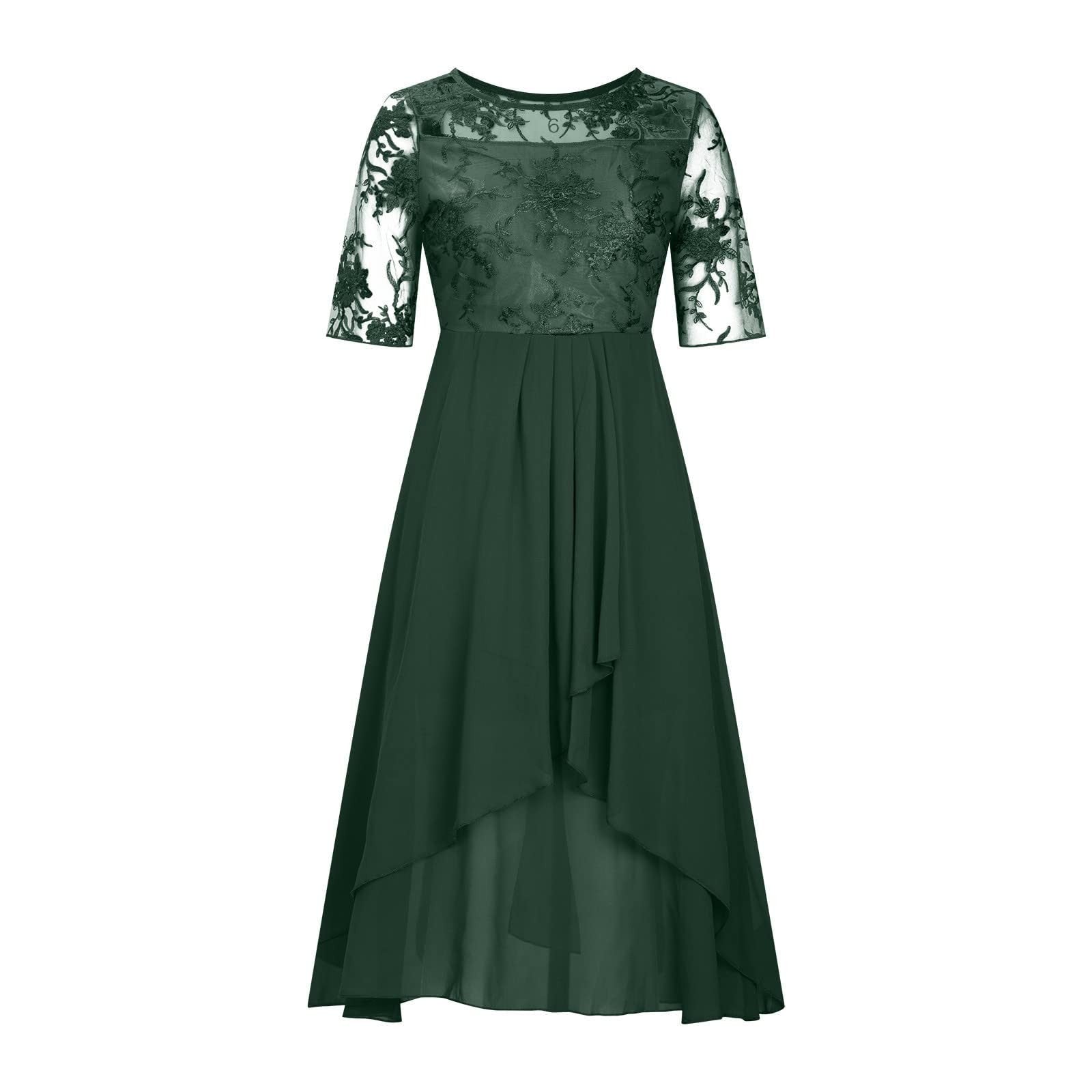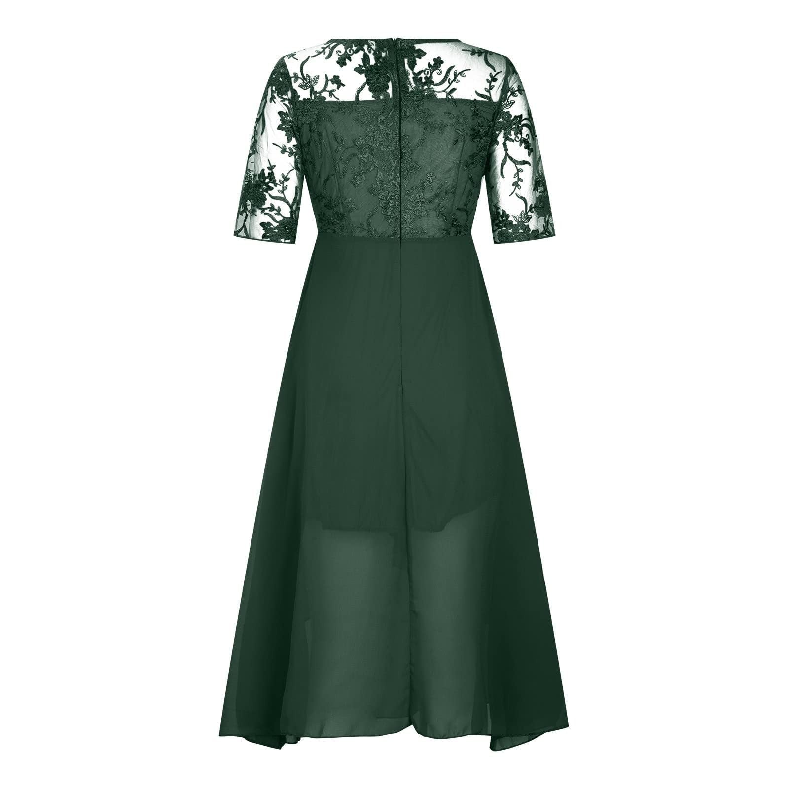 Women's Tea Length Embroidery Lace Chiffon Dress Mock Dress