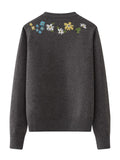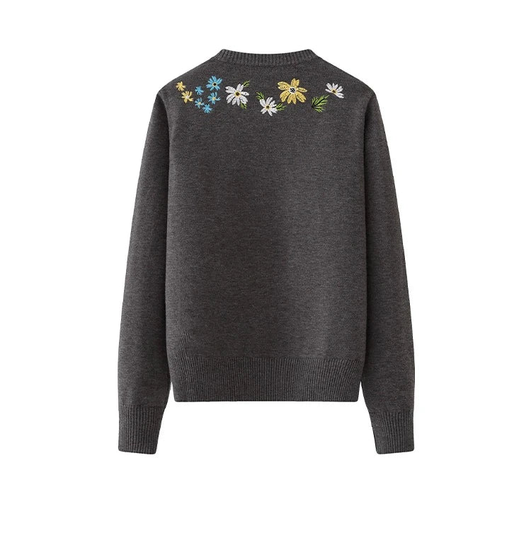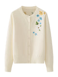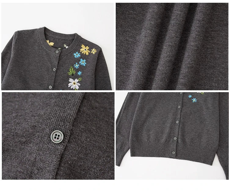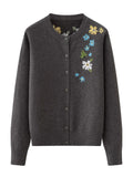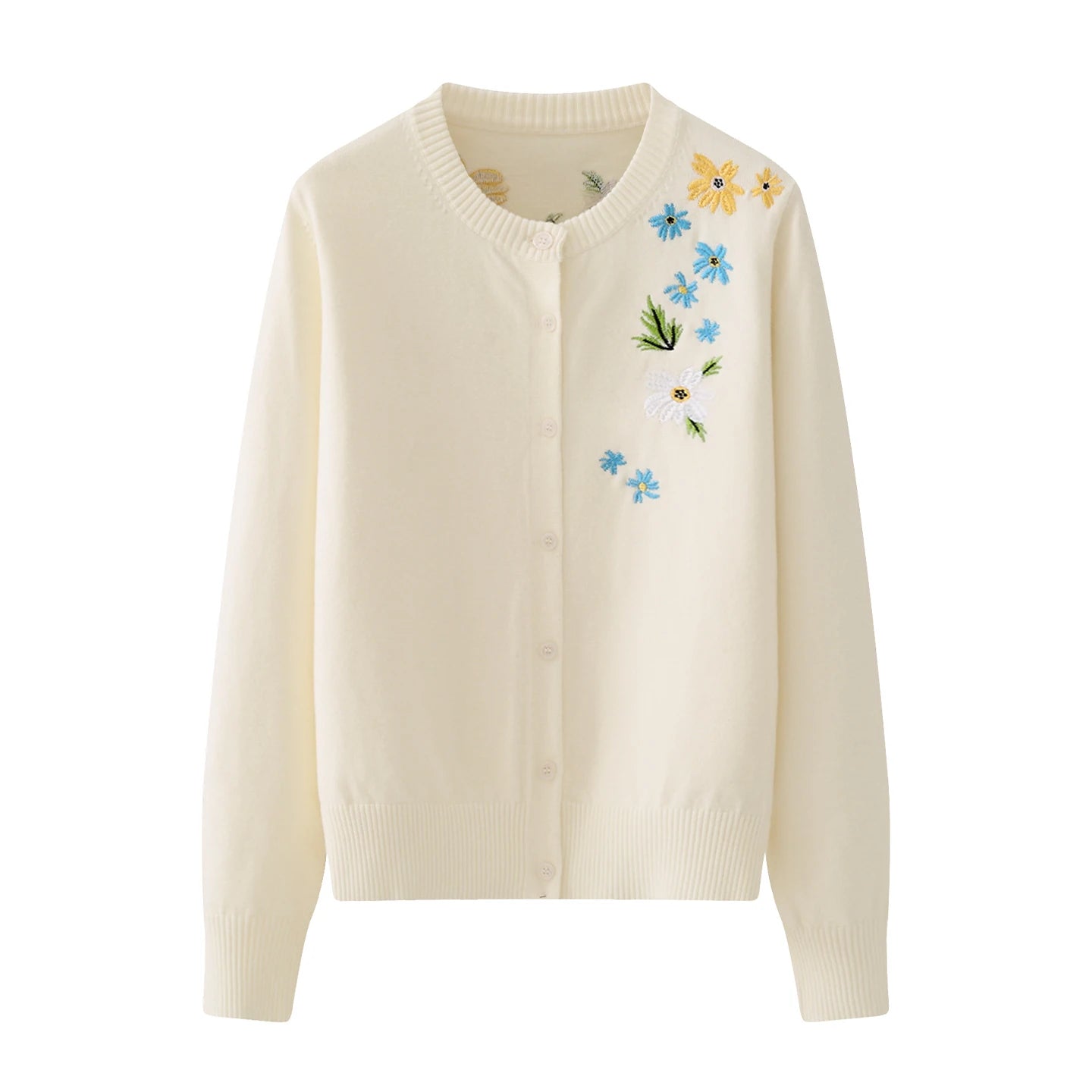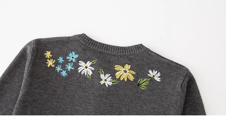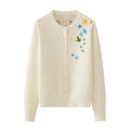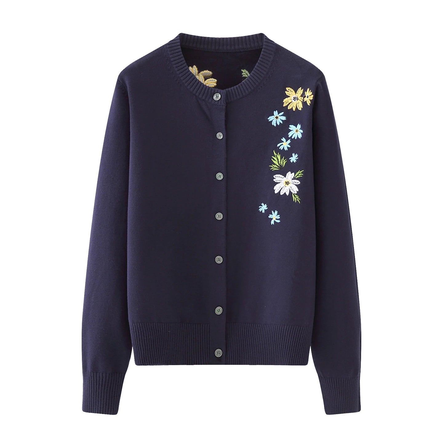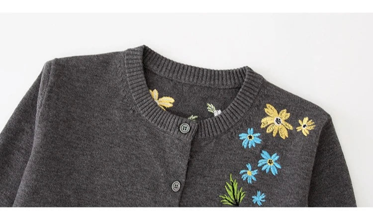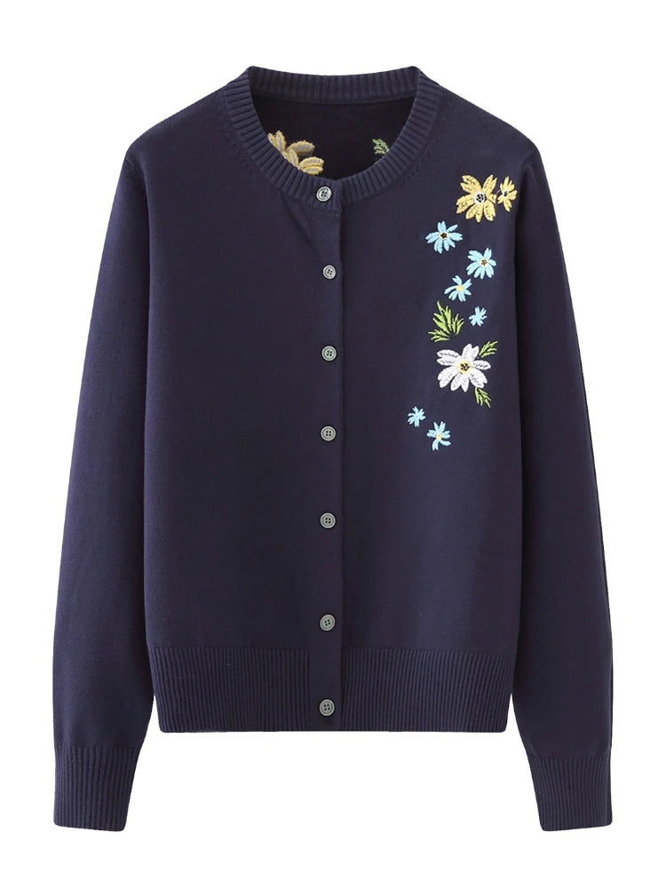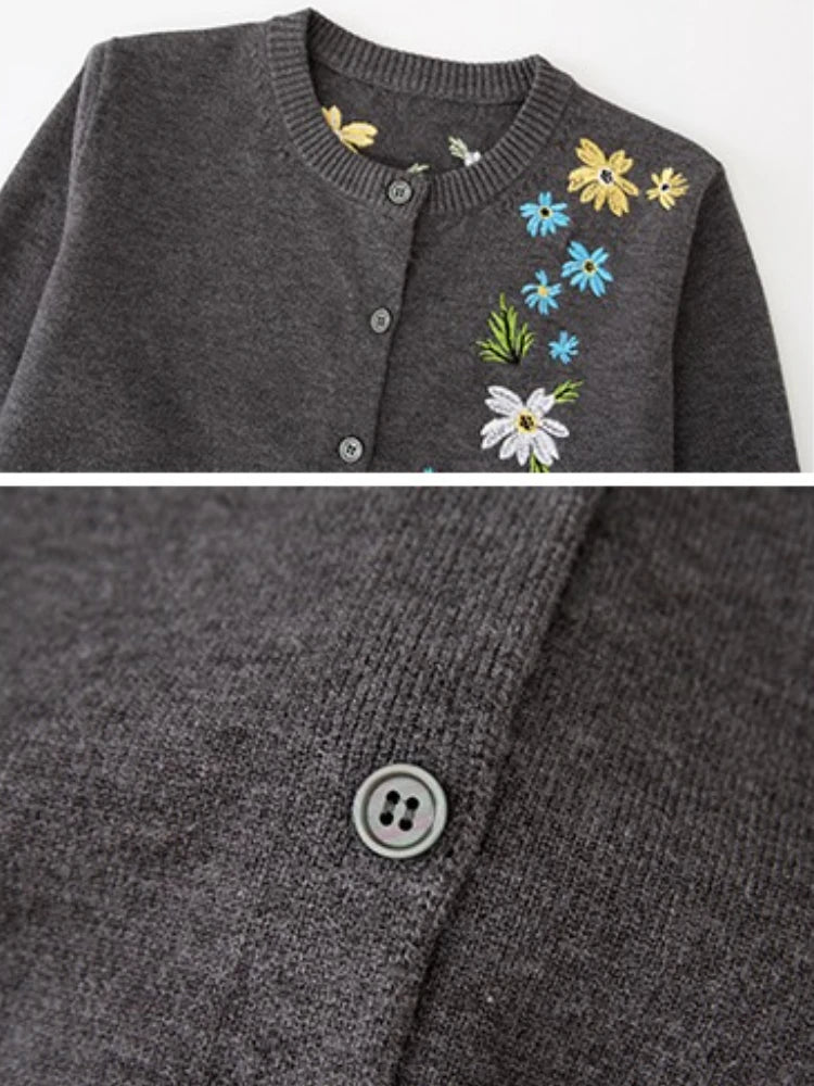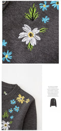 Women's Fashion Versatile Flower Embroidered Knitted Cardigan | O-Neck Long Sleeve Cardigan