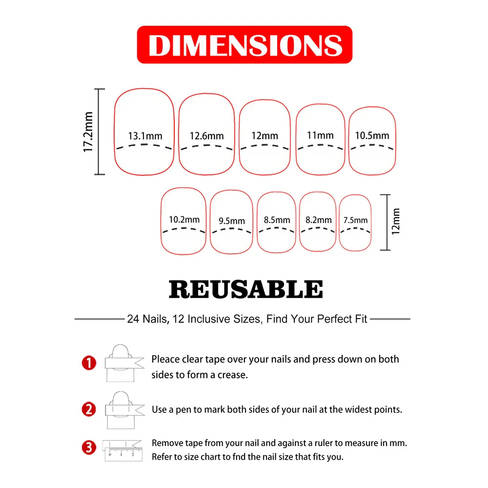 Wide Applications: Press on nails are perfect for special occasions like prom, party, birthday, wedding, dating. Also suitable for holidays like Valentine’s Day, Christmas etc. A great gift idea for girlfriends, sisters, wife, family, friends, etc
