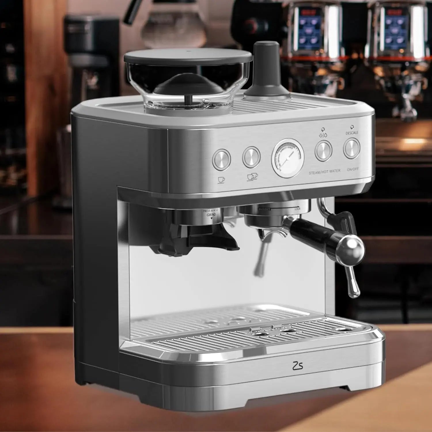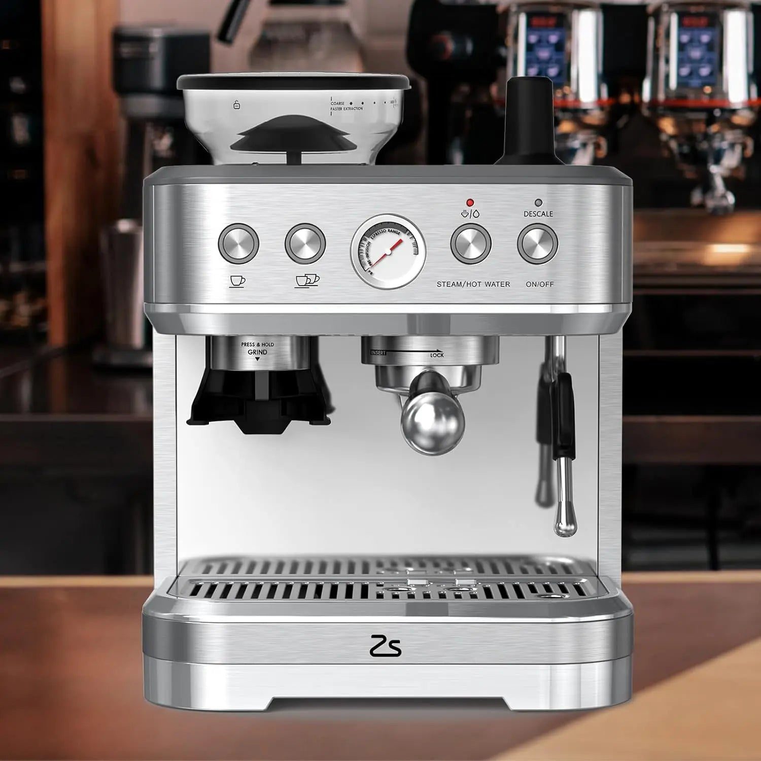 Precise Grinding Control: The espresso machine with grinder built in, which offers 15 size options for grinding coffee beans from coarse to ultrafine, ensuring even grinds and allowing you to achieve your desired flavors