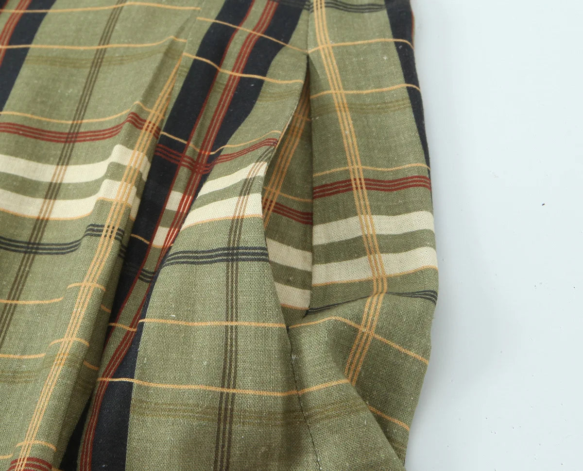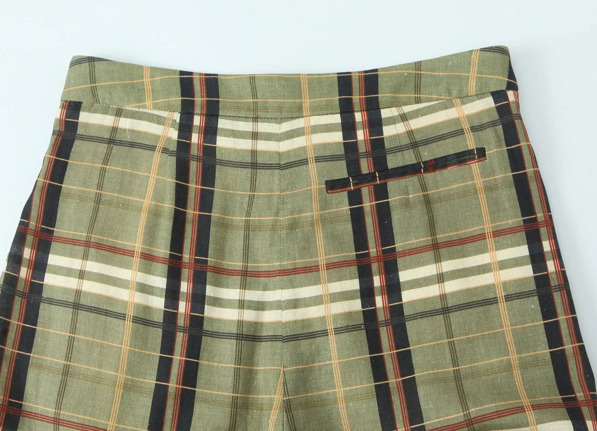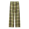 Vintage Green Plaid Extra Long Pants For Woman | Causal High Waist Trousers | Pants Streetwear
