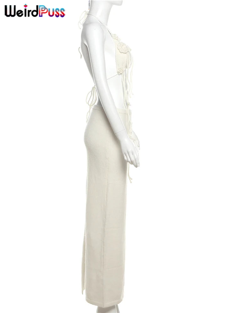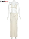 Fall Fashion 2025 Women | 2 Piece Set Elegant Flowers Tassel Halter Camisole+Long Skirts