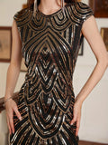 Cocktail Party Dress O Neck Elegant Modest Full Sleeveless | Fall Fashion Ideas | Sequin Evening Dress for Women | Prom Gown