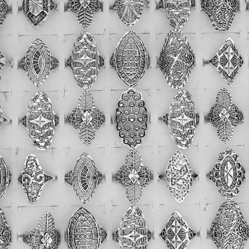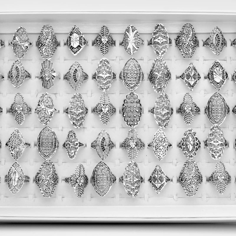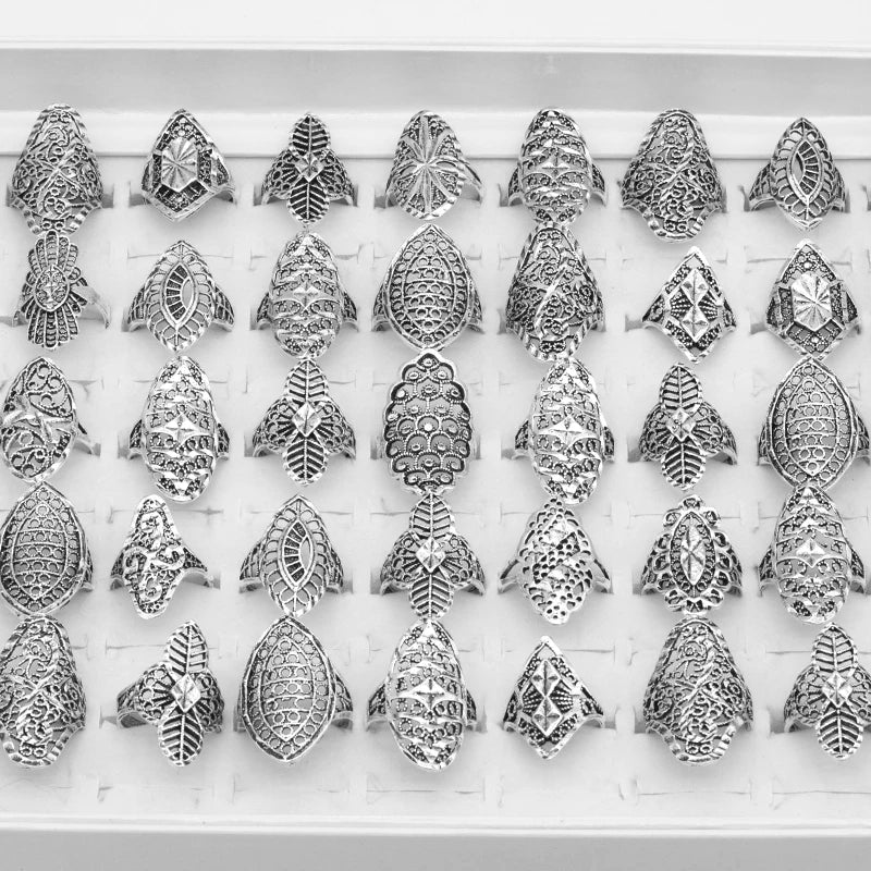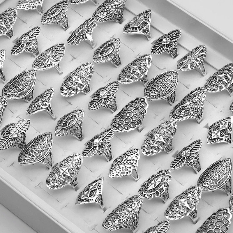 50pcs/lot Hollow Fashion Finger Rings | Heart Love Crown Flower Mix Style | Women Wedding Gift Jewelry