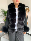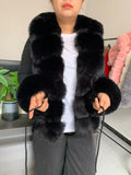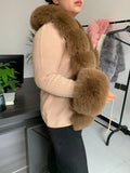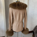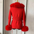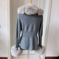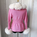 Faux Fur Knit Sweater Cardigan | Knitted sweater with faux fox fur collar Ladies Fashion Coat