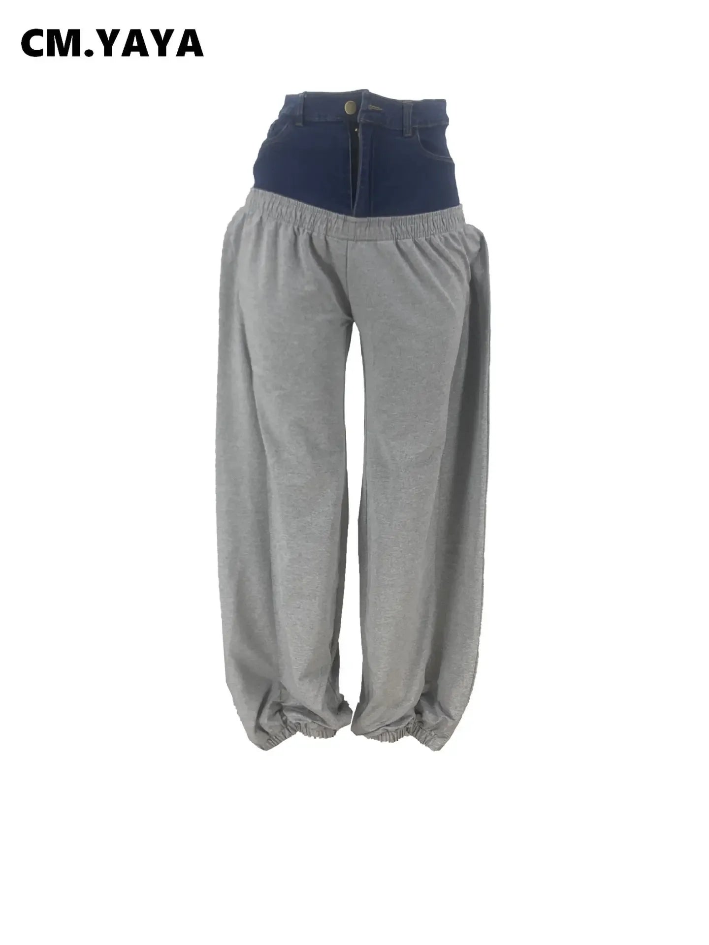 CM.YAYA Fashion Women Denim Patchwork High Waist Jogger Pants | Feminine streetwear