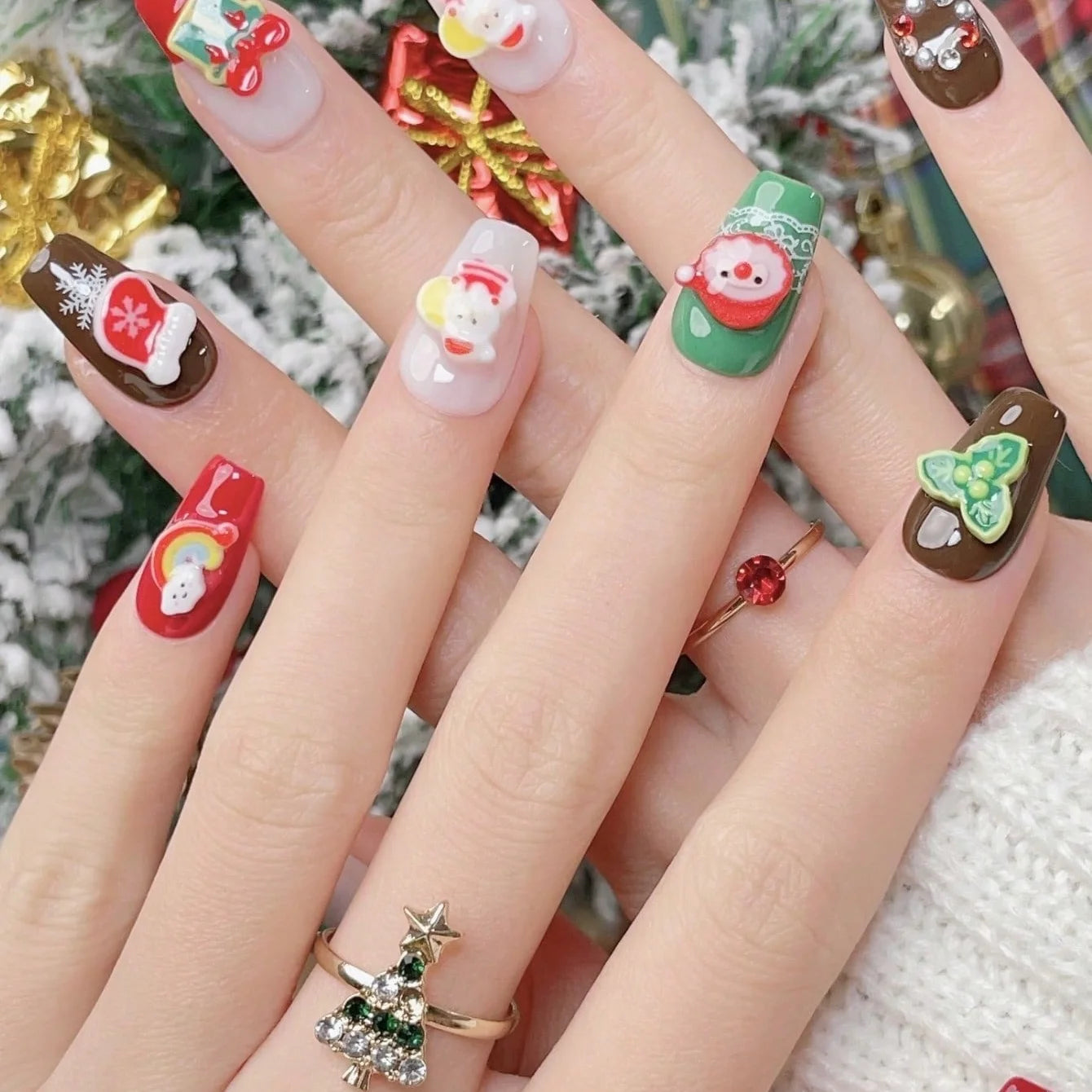 10 beautiful fake nails, colorful Christmas festive nails ideas, suitable for women to use