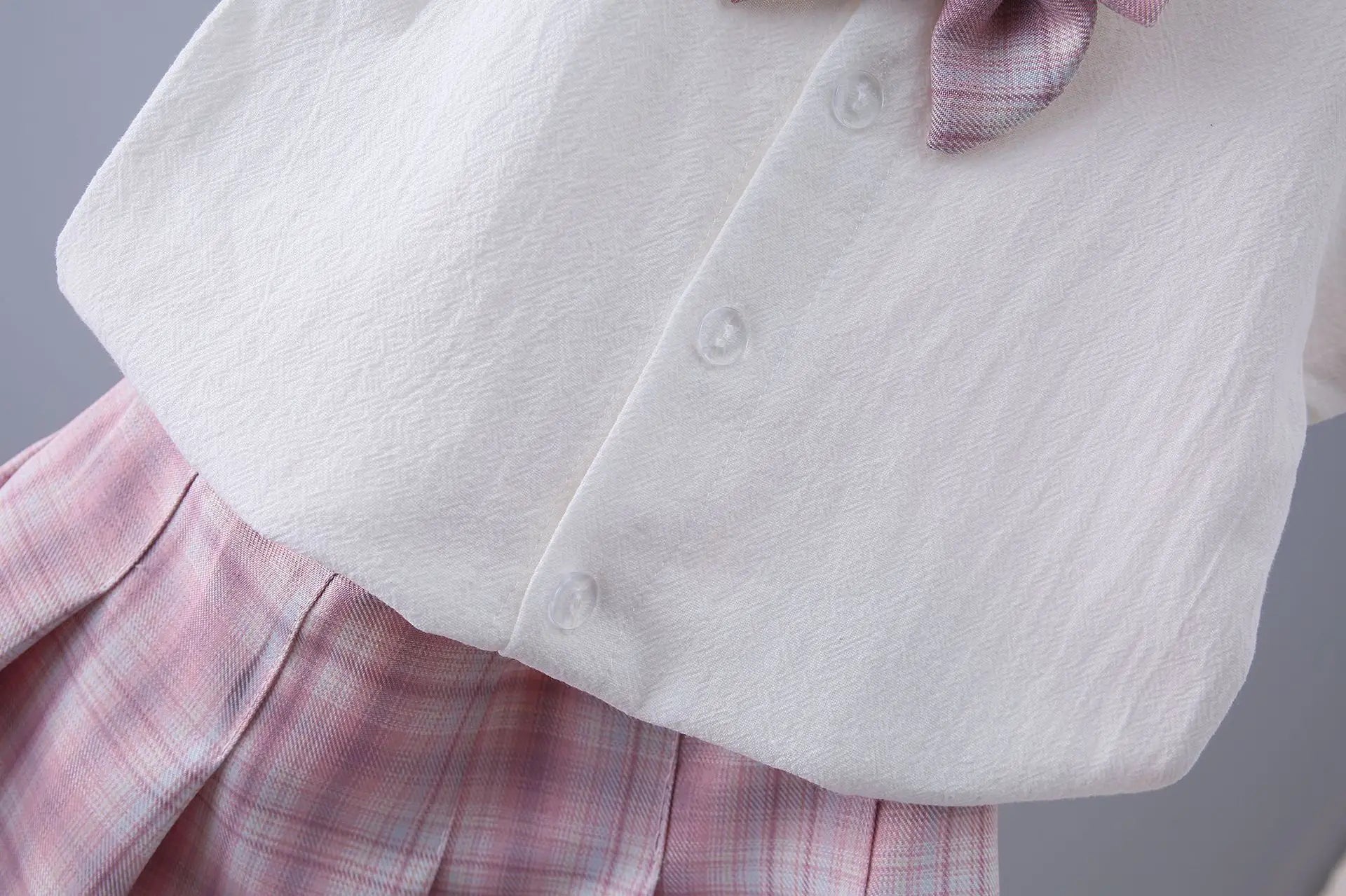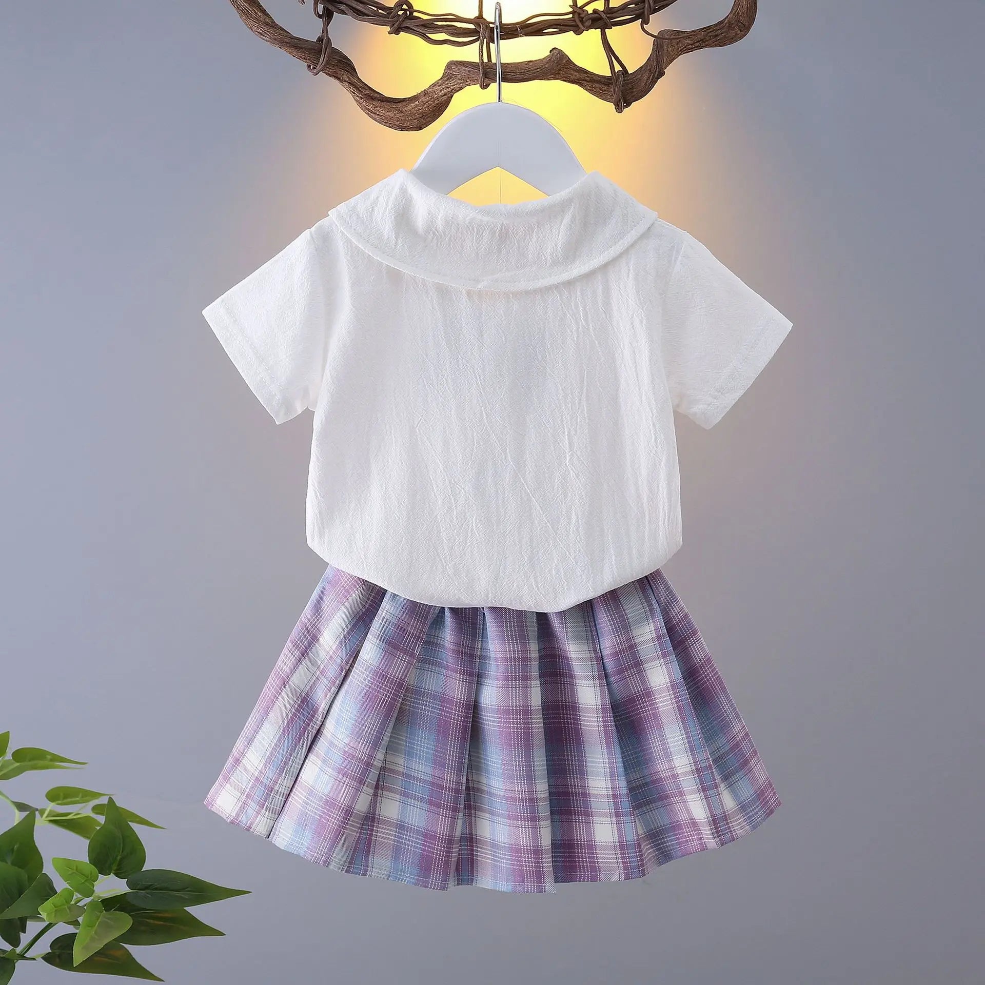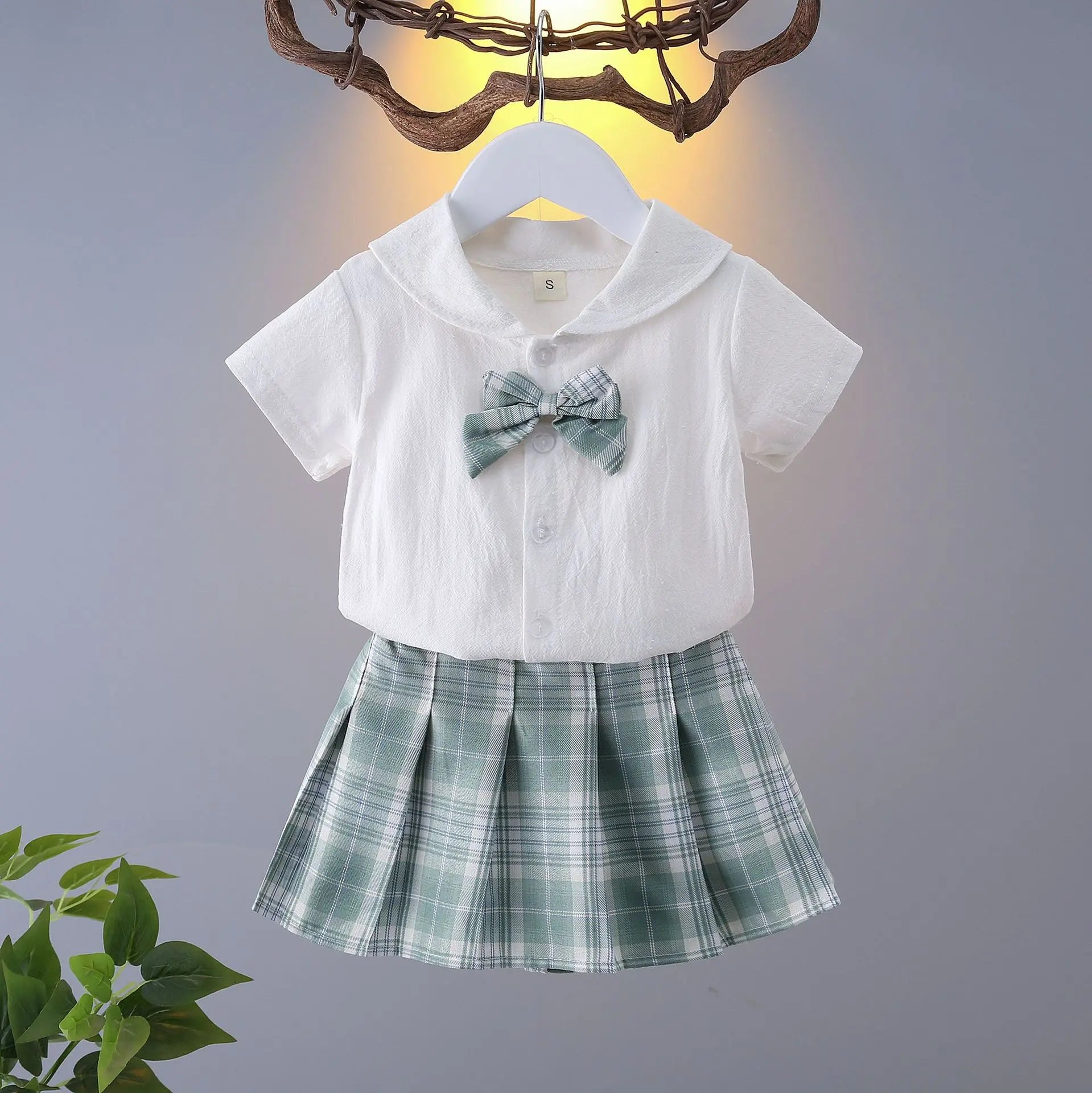 First Day Of School Outfit | Pleated Skirt + Short Sleeves Shirts | Summer Children Big Kids School Sweat Clothes