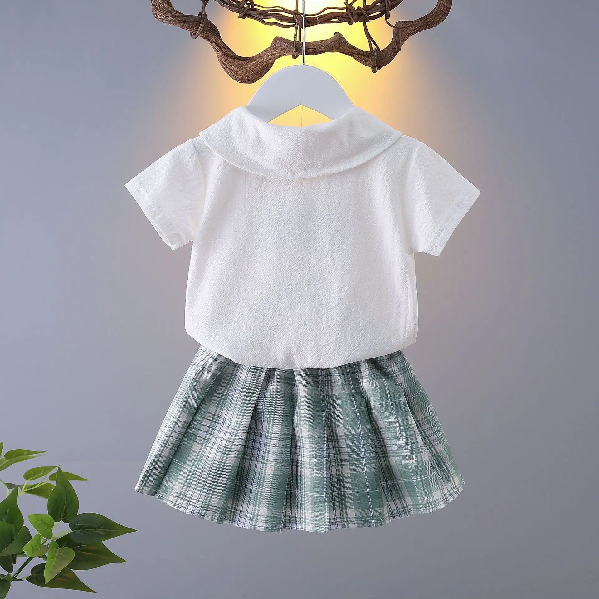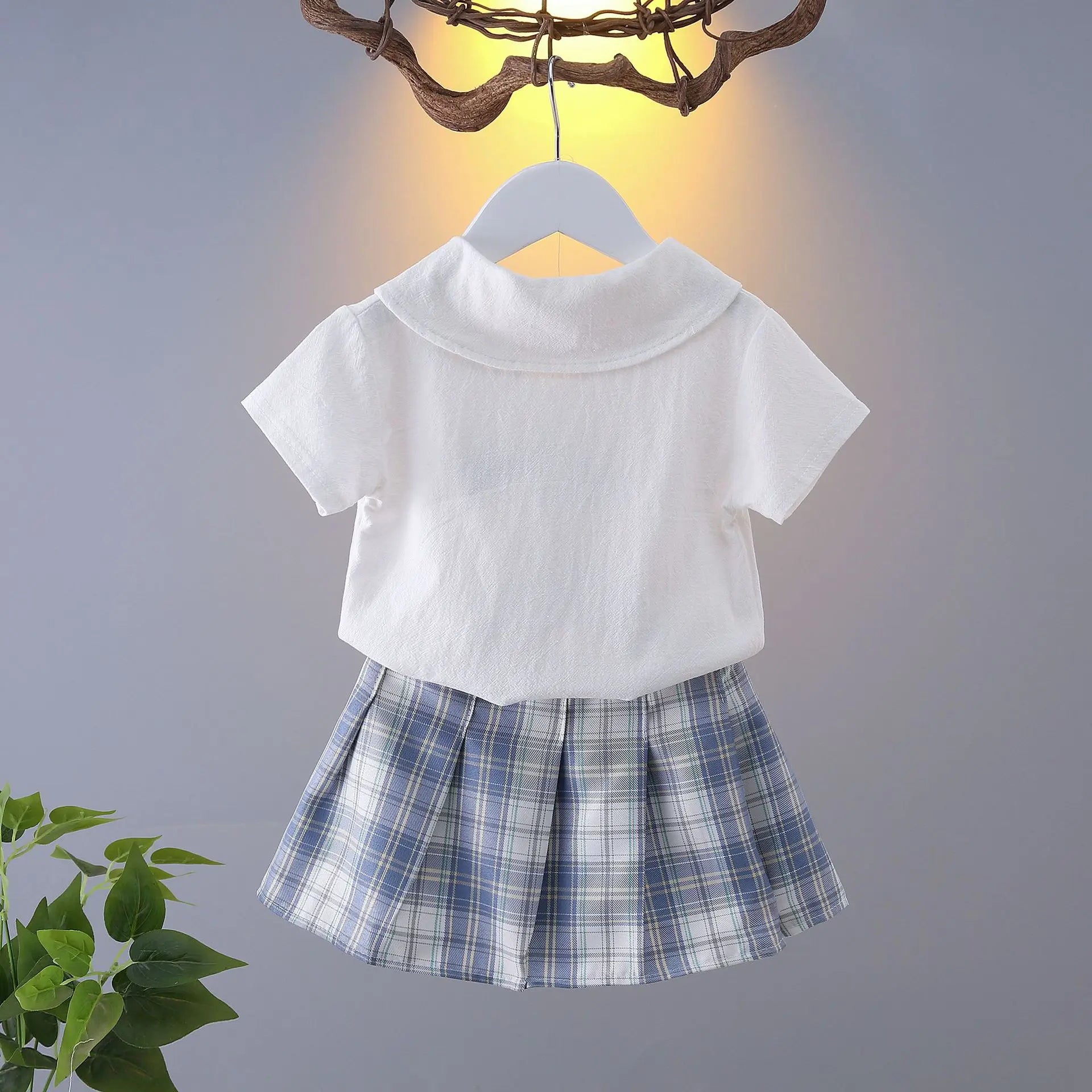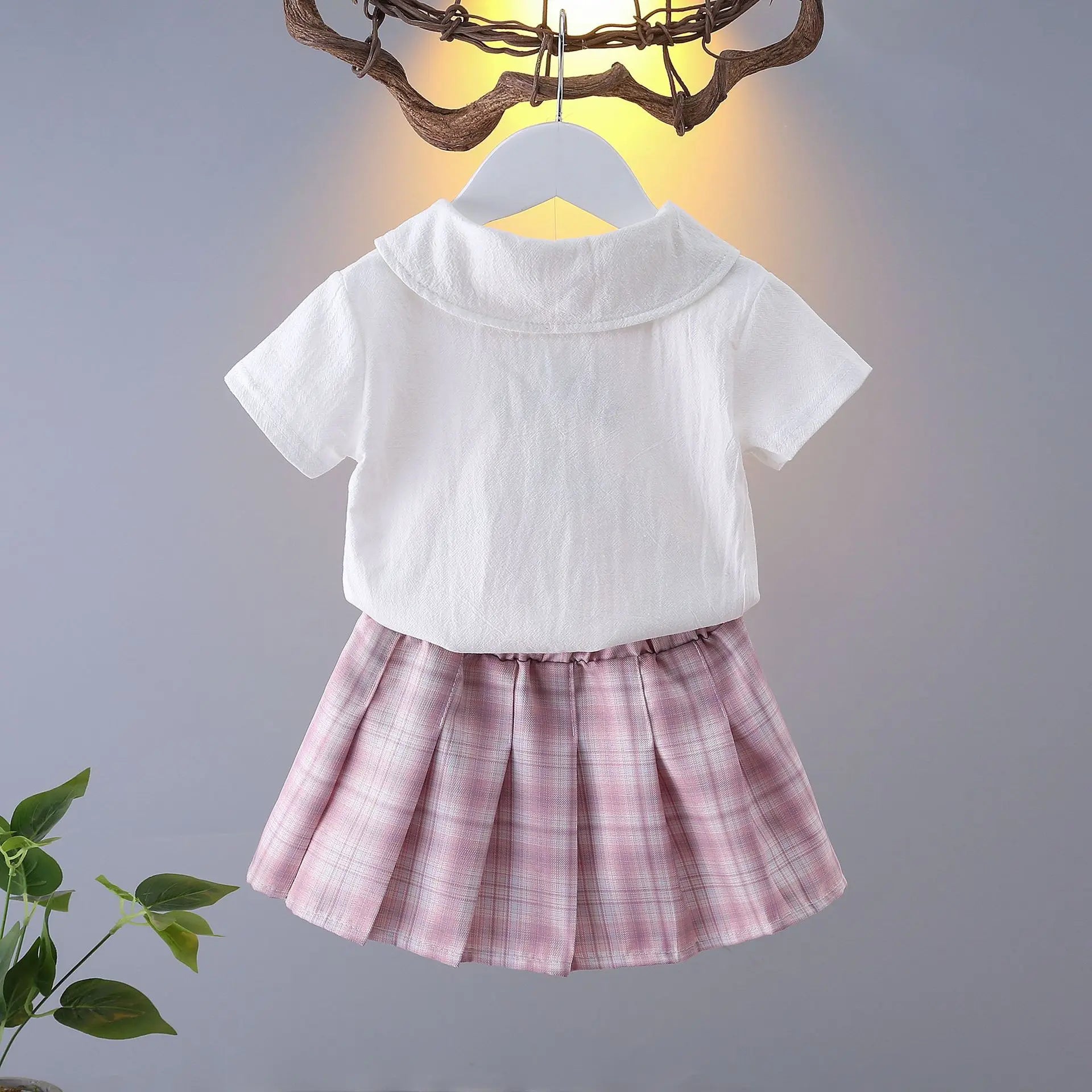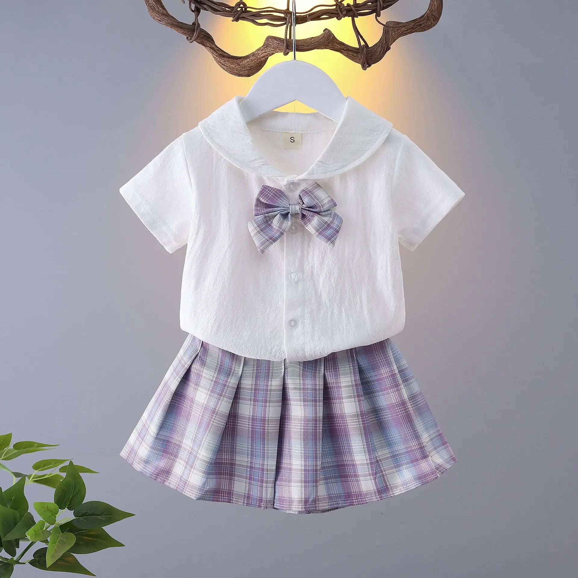 First Day Of School Outfit | Pleated Skirt + Short Sleeves Shirts | Summer Children Big Kids School Sweat Clothes