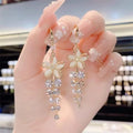 Luxury Crystal Floral Earrings for Women | Shiny Zircon Opal Long Dangle Earrings