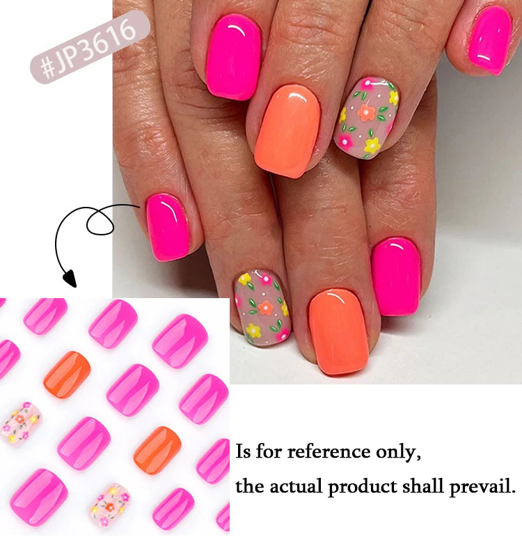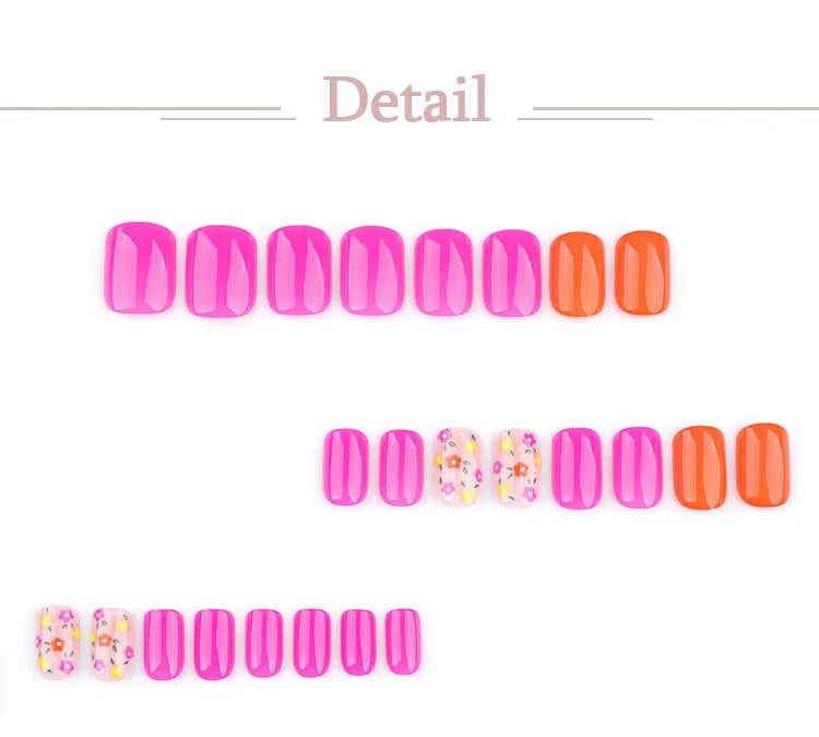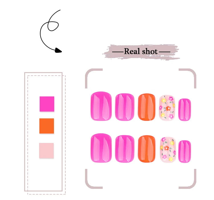 Hand-painted Flowers Nail Art | Orange Purple Pure Color False Nail with Glue
