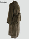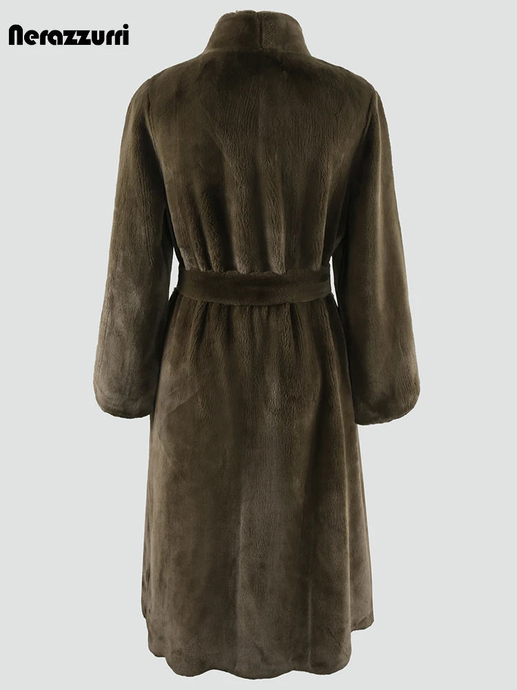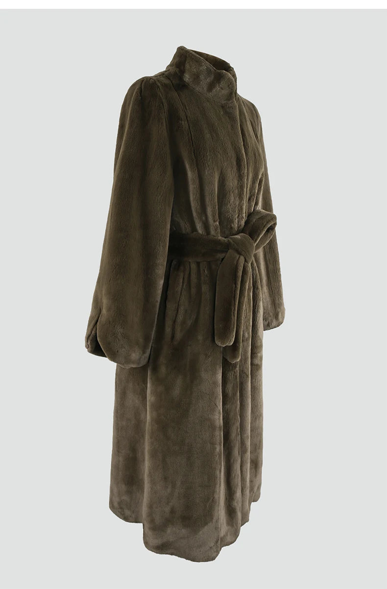Fluffy Winter Coat | Women Stand Collar Sashes A Line Clothes