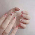 24Pcs French Bow Nails Worn Removable And Diamonds