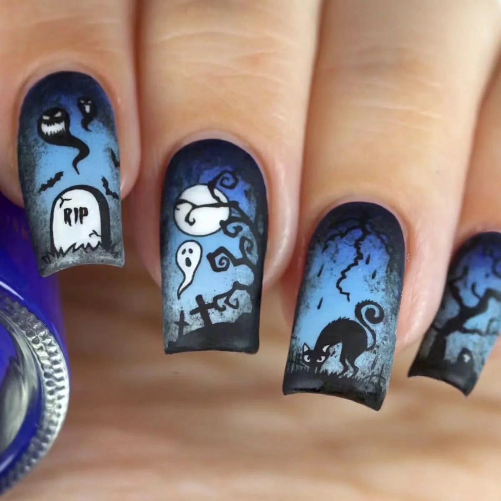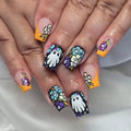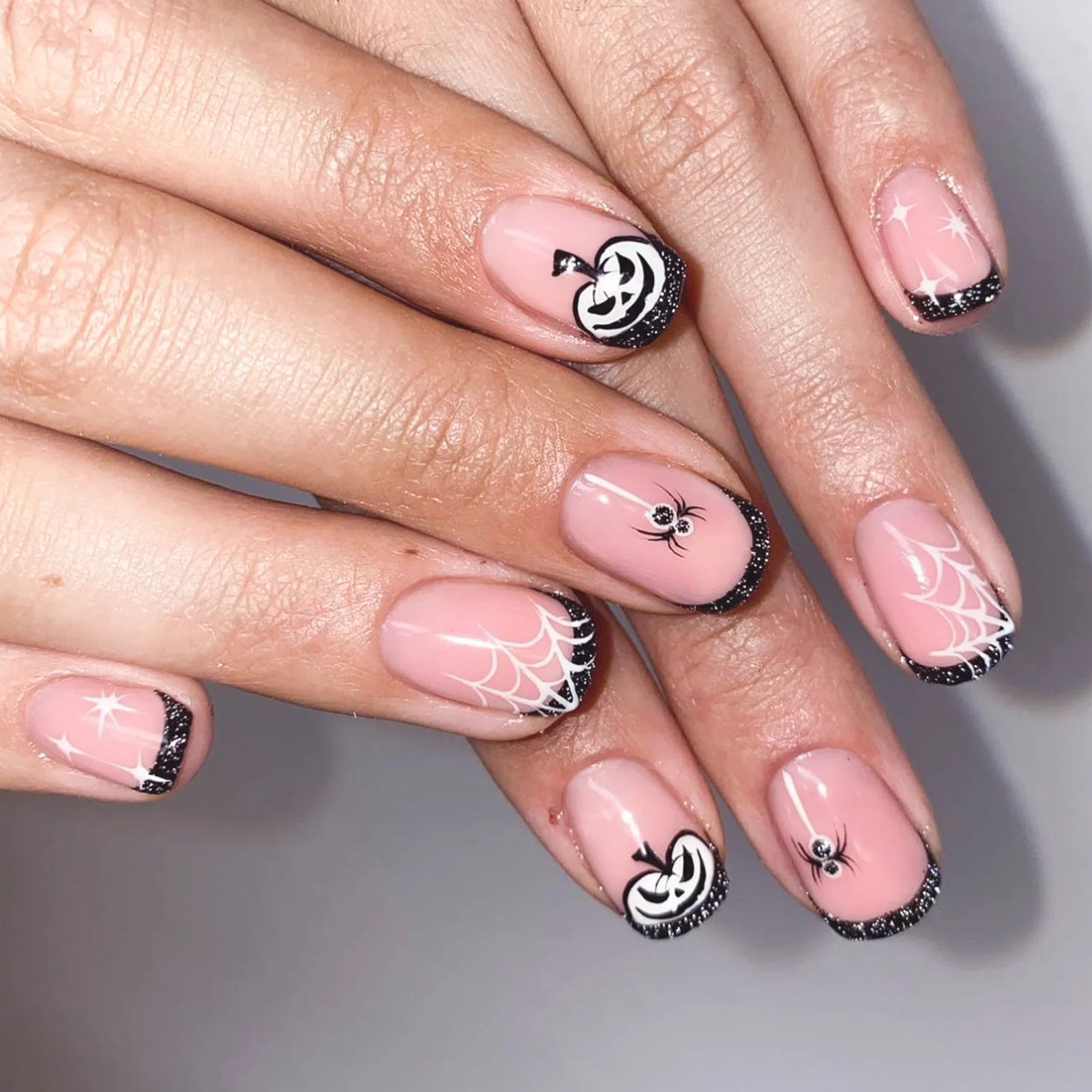 24 French Halloween Nails | Square Press On Nails Ins Style Fake Nails With Ghost Skull Designs