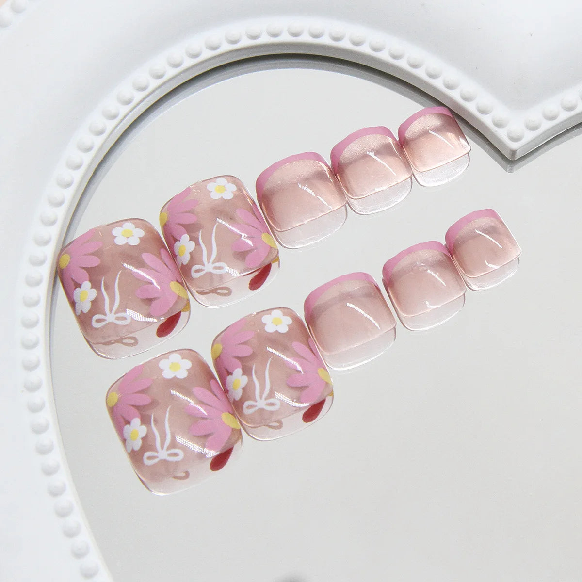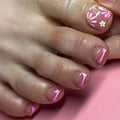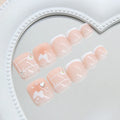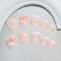 24Pcs Nude Toenails |White French Tips Fake Nails | Fairy Butterfly Flower Printed