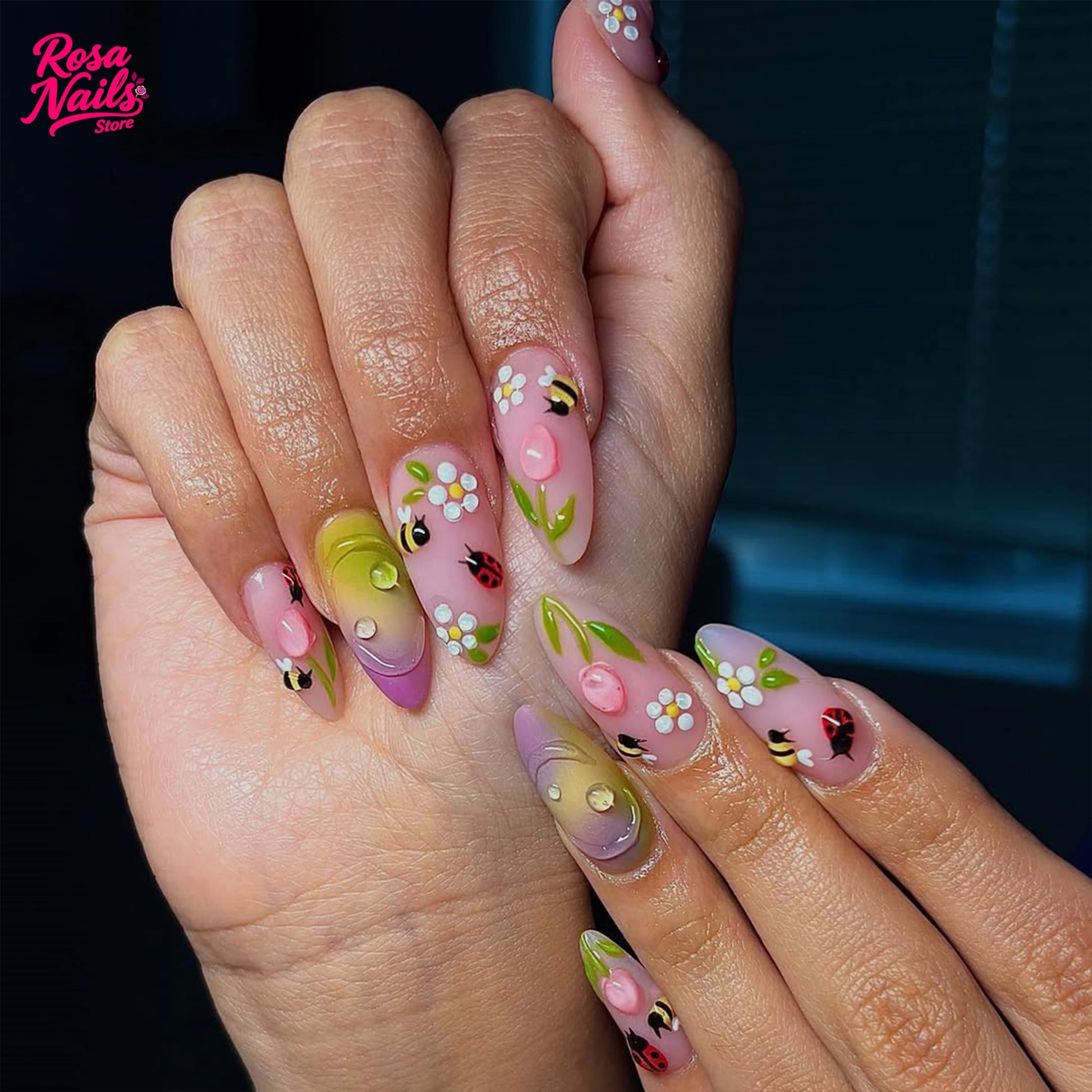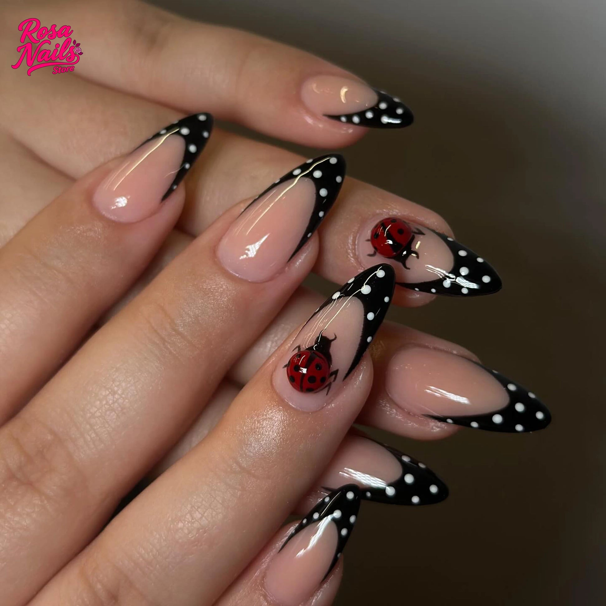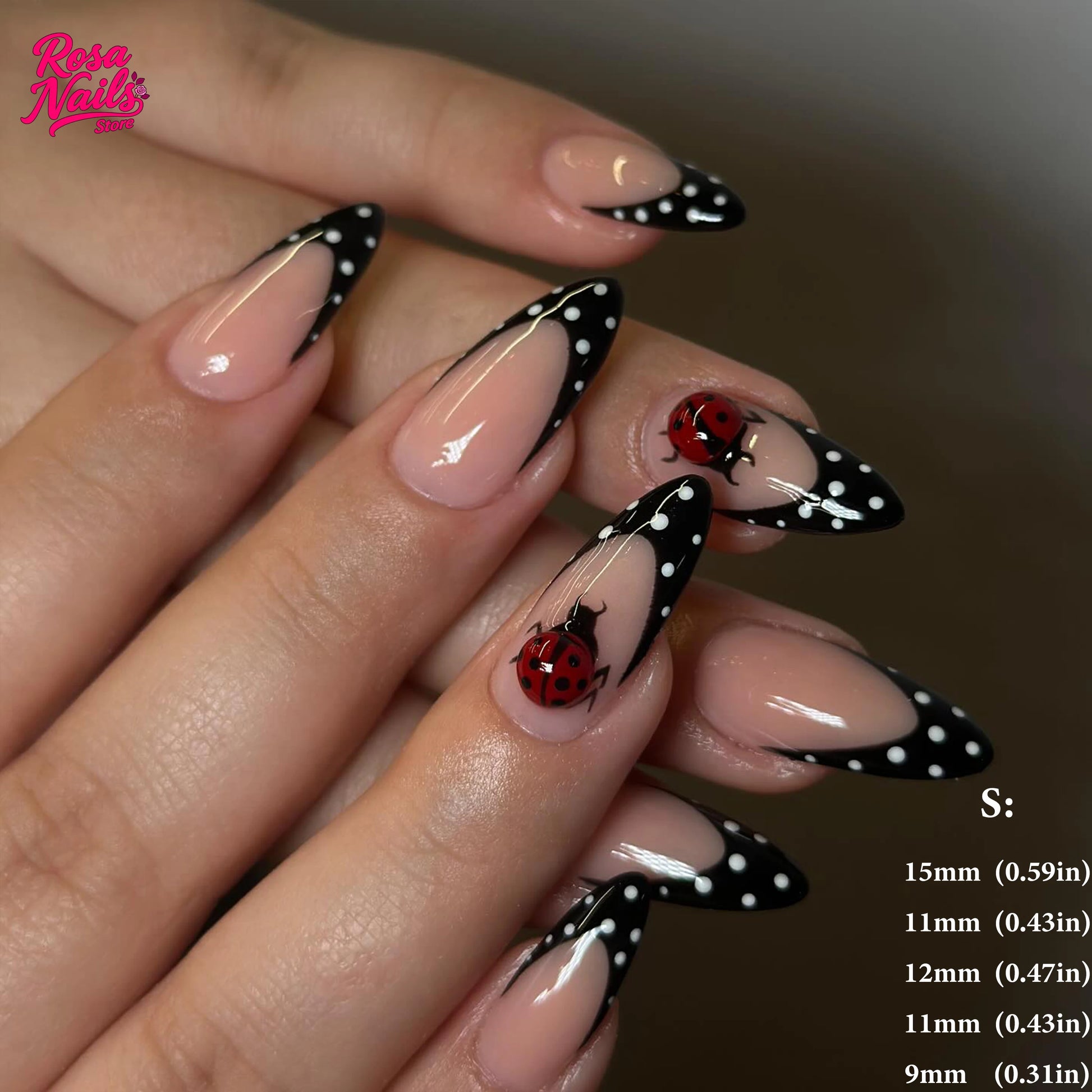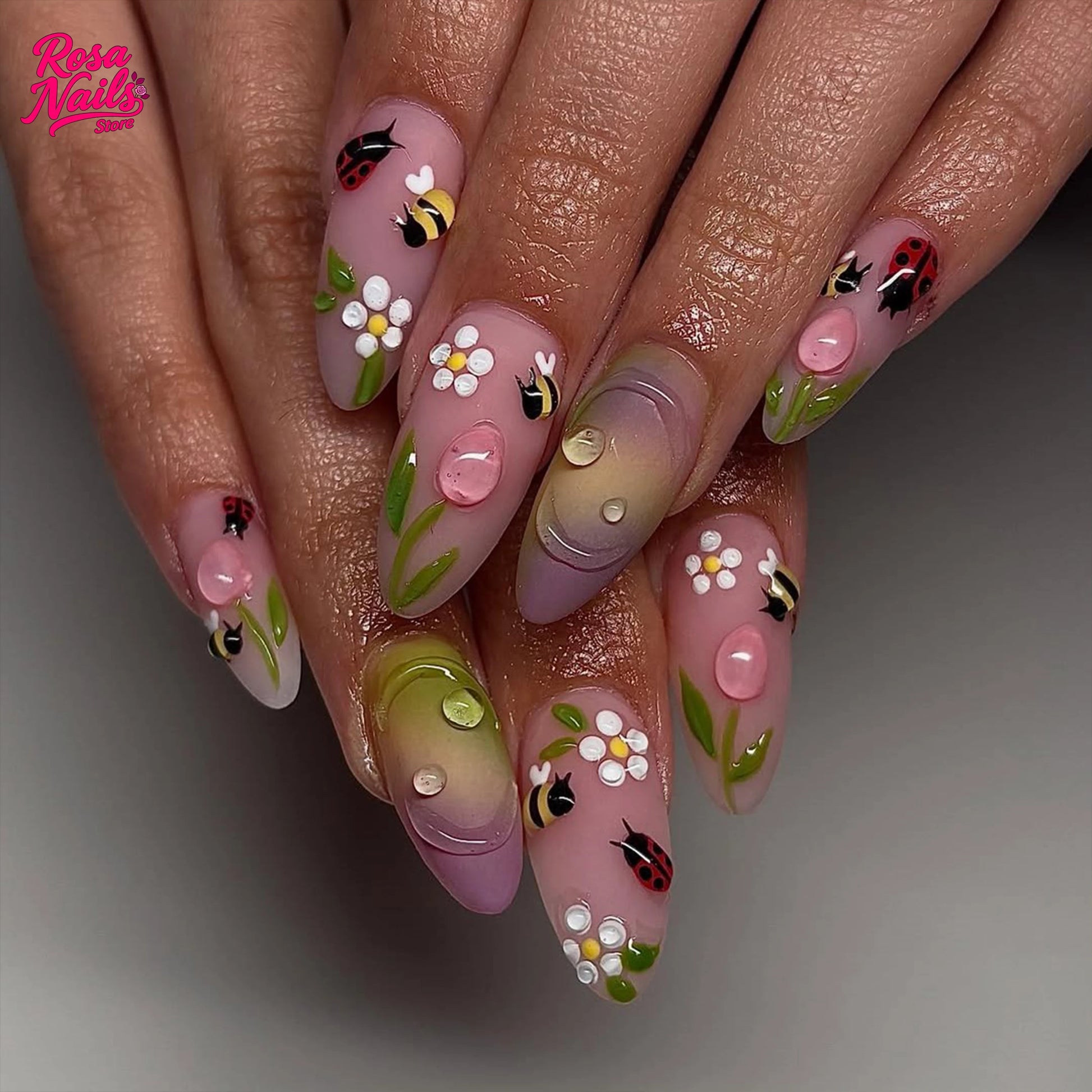 10 Garden Ladybug Nail | Handmade Press on Nails | Almond Summer Garden Ladybug Nail