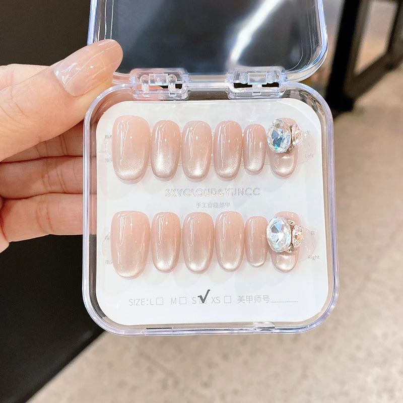 12 Gel Nail Ideas For School | Glitter Rhinestone Design Full Cover False Nails for Girls