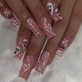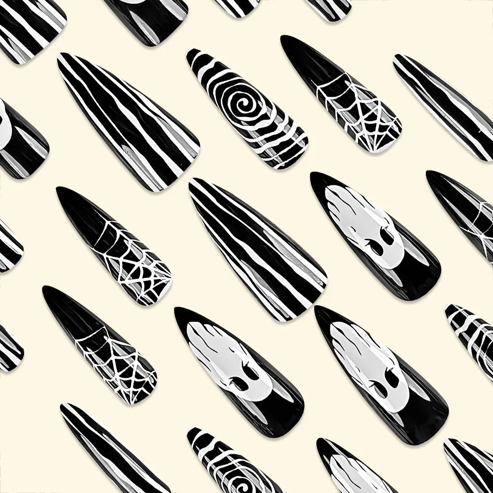24 Ghost Press on Nails | Personalized Cobweb Pattern Teardrop Nails Full Cover False Nail