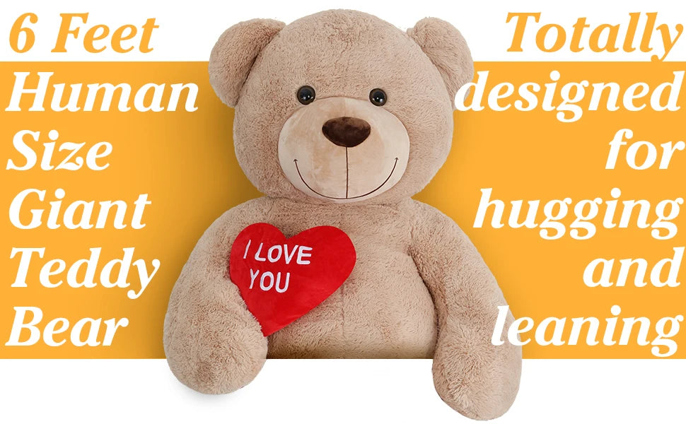 Giant Teddy Bear 6ft- “I Love You”Red Heart Jumbo Human Size Teddy Bear for Lovers
