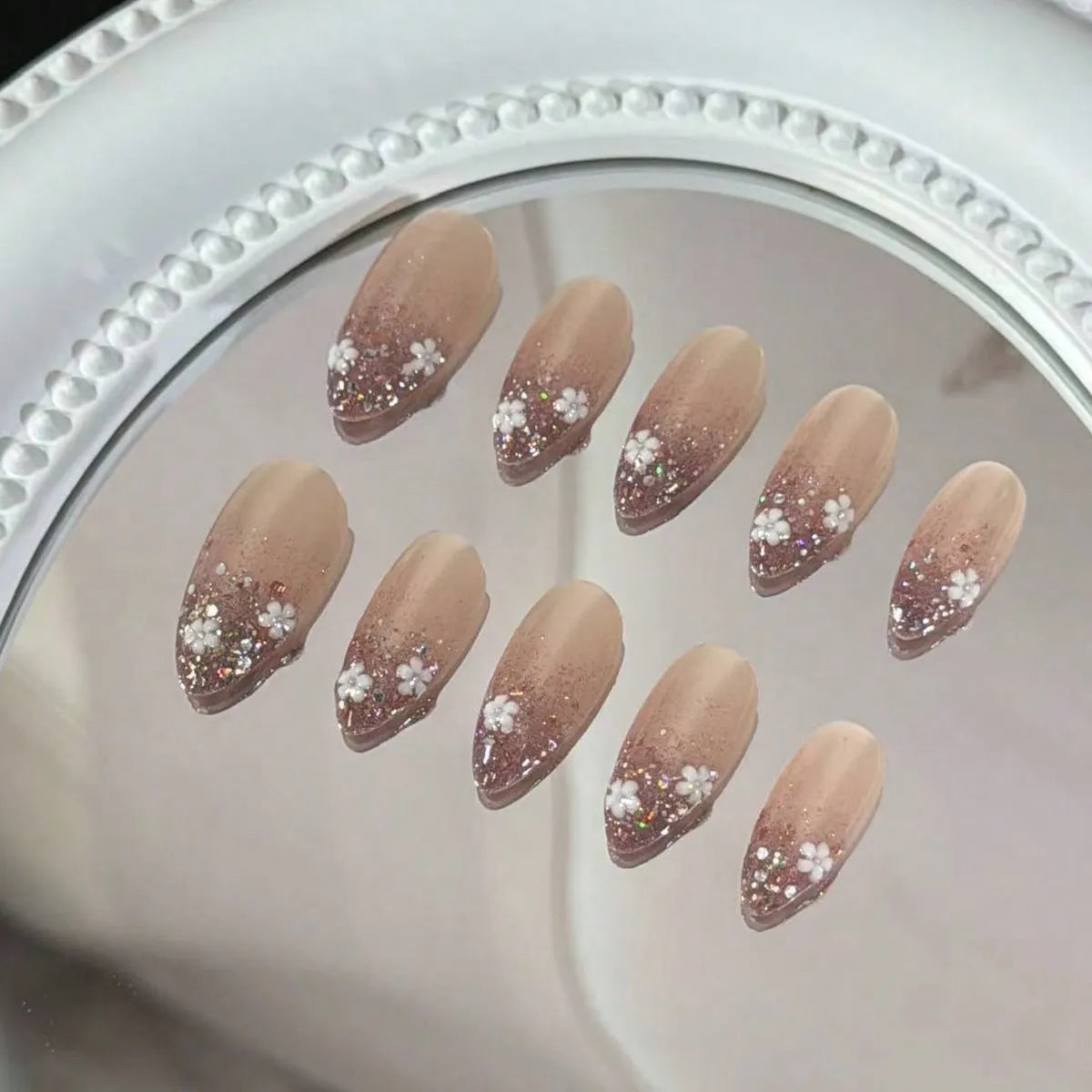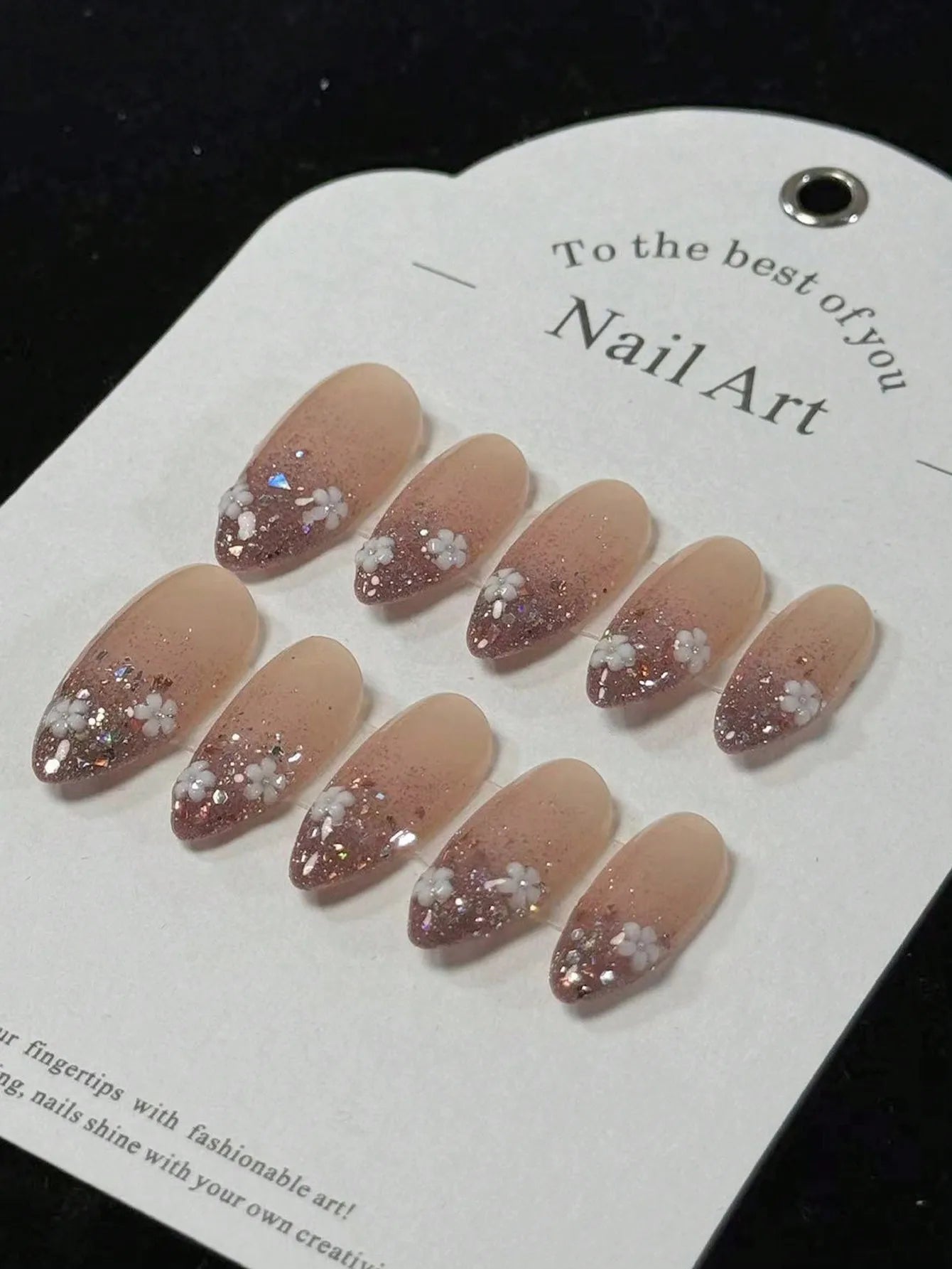 10 Glitter spring nails | flower cute delicate simple office fashion detachable false nails,