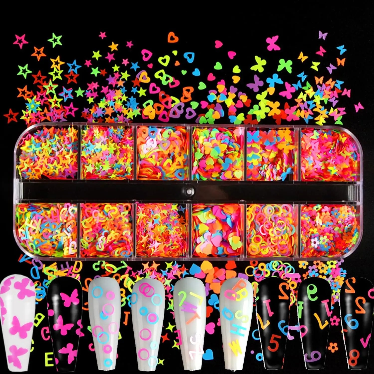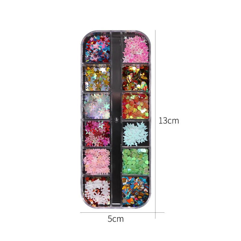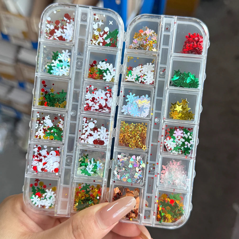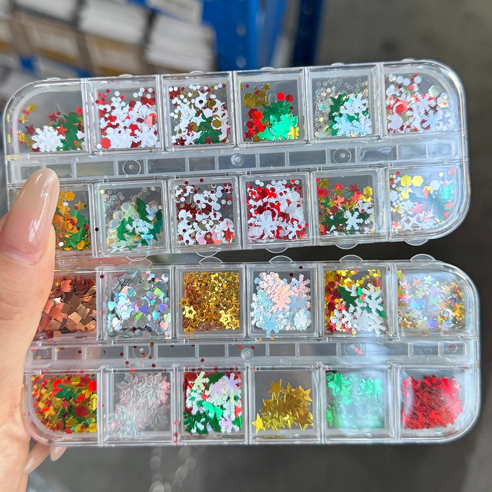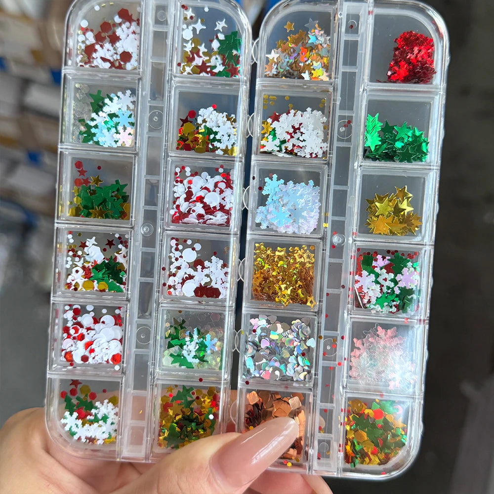 12Grid Festive Christmas Nail Glitter Sequins Mixed Hexagon Star Snowflake Christmas Tree Circle Holo Nail Flakes Xmas Paillette