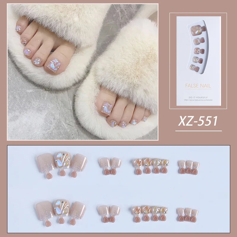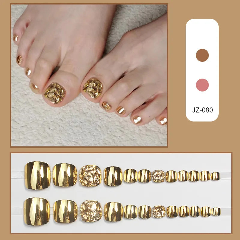 New Summer Gold Toe Nails Design | Press On Glitter Mirror Fake Toe Nail Stickers Full Cover Feet Nail Tips False Nails