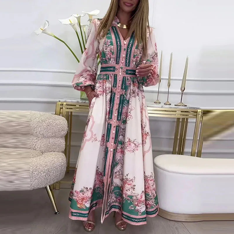Graceful and Stylish Fall Dress with V-Neck and Long Sleeves