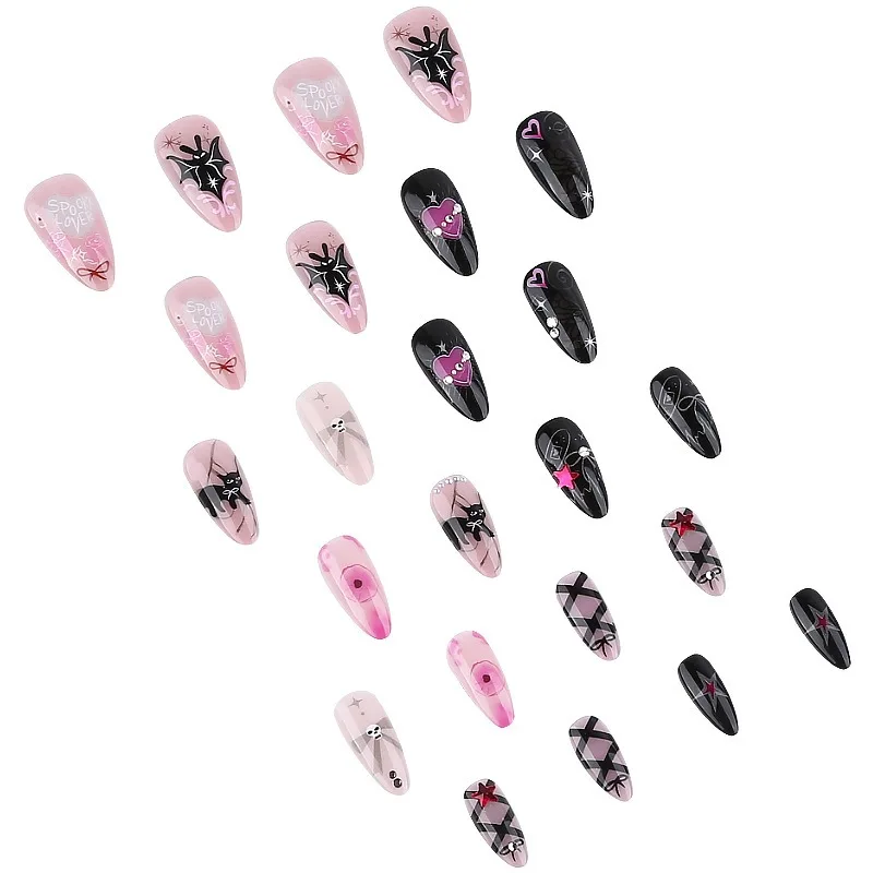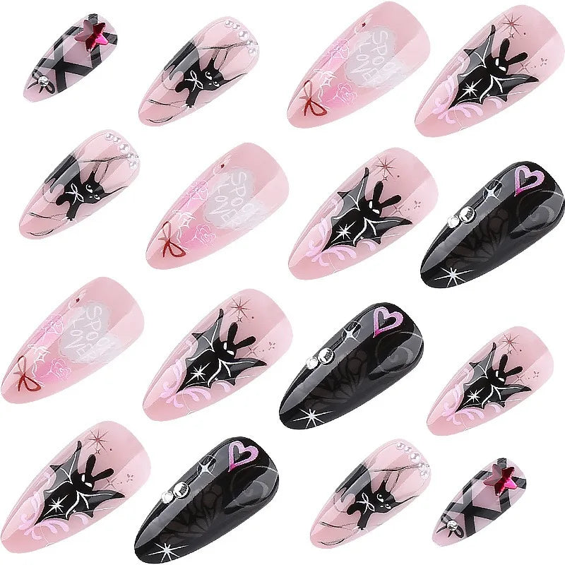 24Pcs Halloween Almond Shape Nails | Full Cover Easter Bat Spider Cool Y2k Fake Nails | Manicure Nail Tips Art