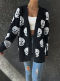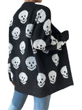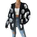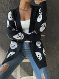 Women's Halloween Casual Knit Cardigan Long Sleeve Open Front Skull Print Knitwear Sweater
