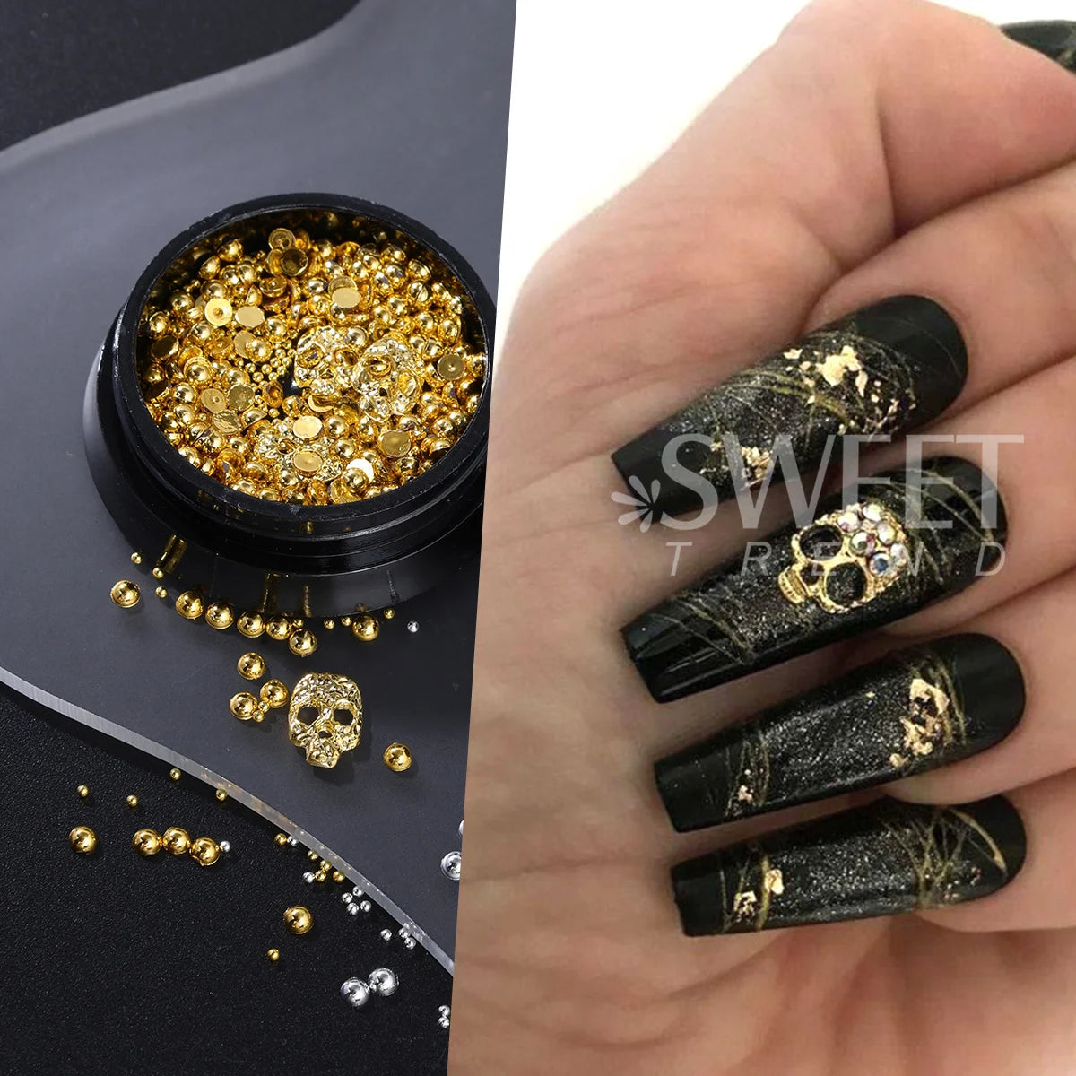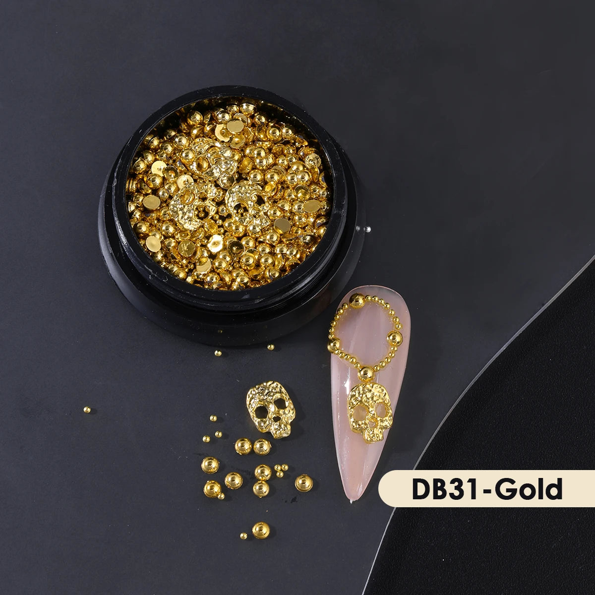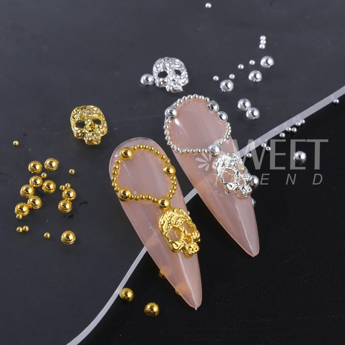 Alloy Halloween Design Nail Art | Charms Punk Gold Silver Half Round Beads Skull Jewelry Pearl Decor Accessories