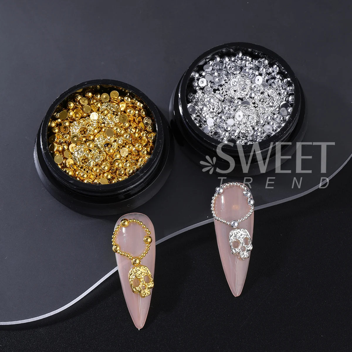 ltems:Halloween Skull Half Round Beads Nail Art Jewelry