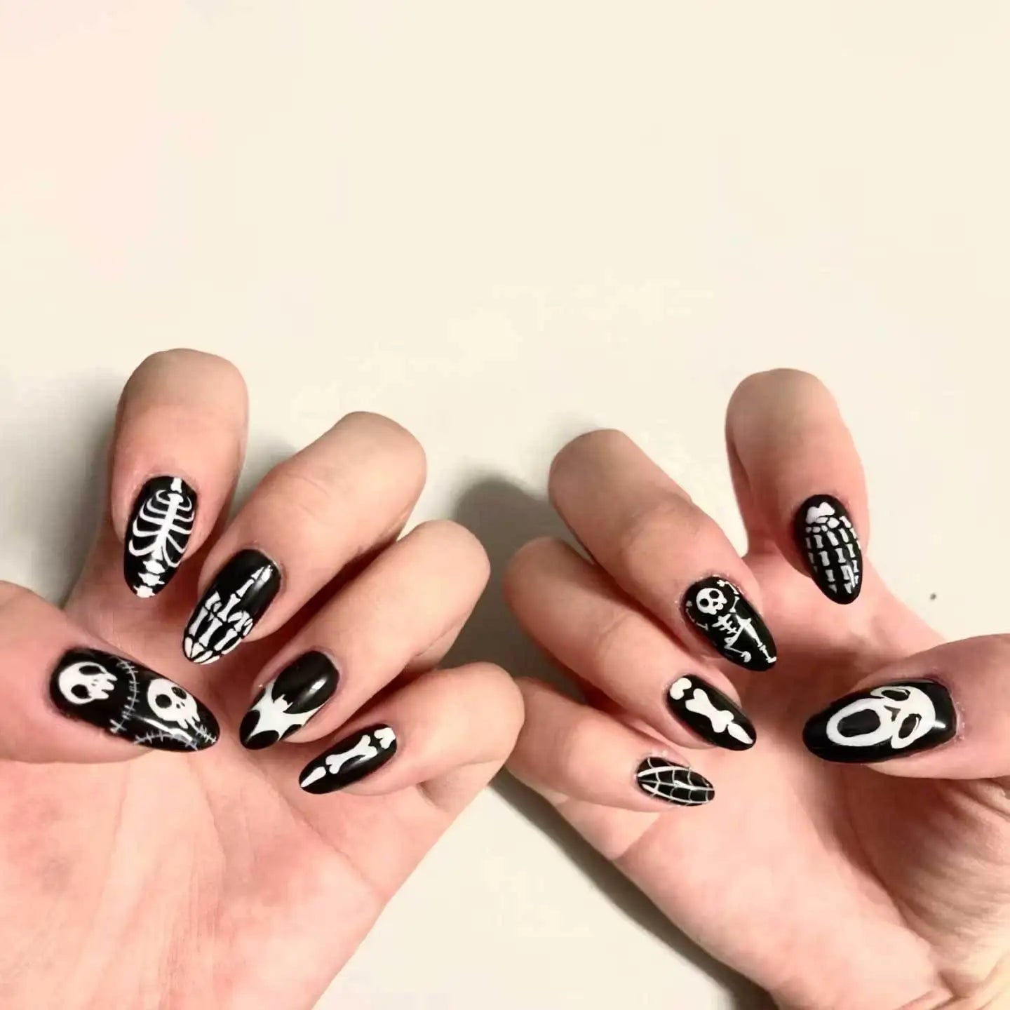 24 Halloween Fake Nails Ideas | Scary Skull Print Fake Nails for Women