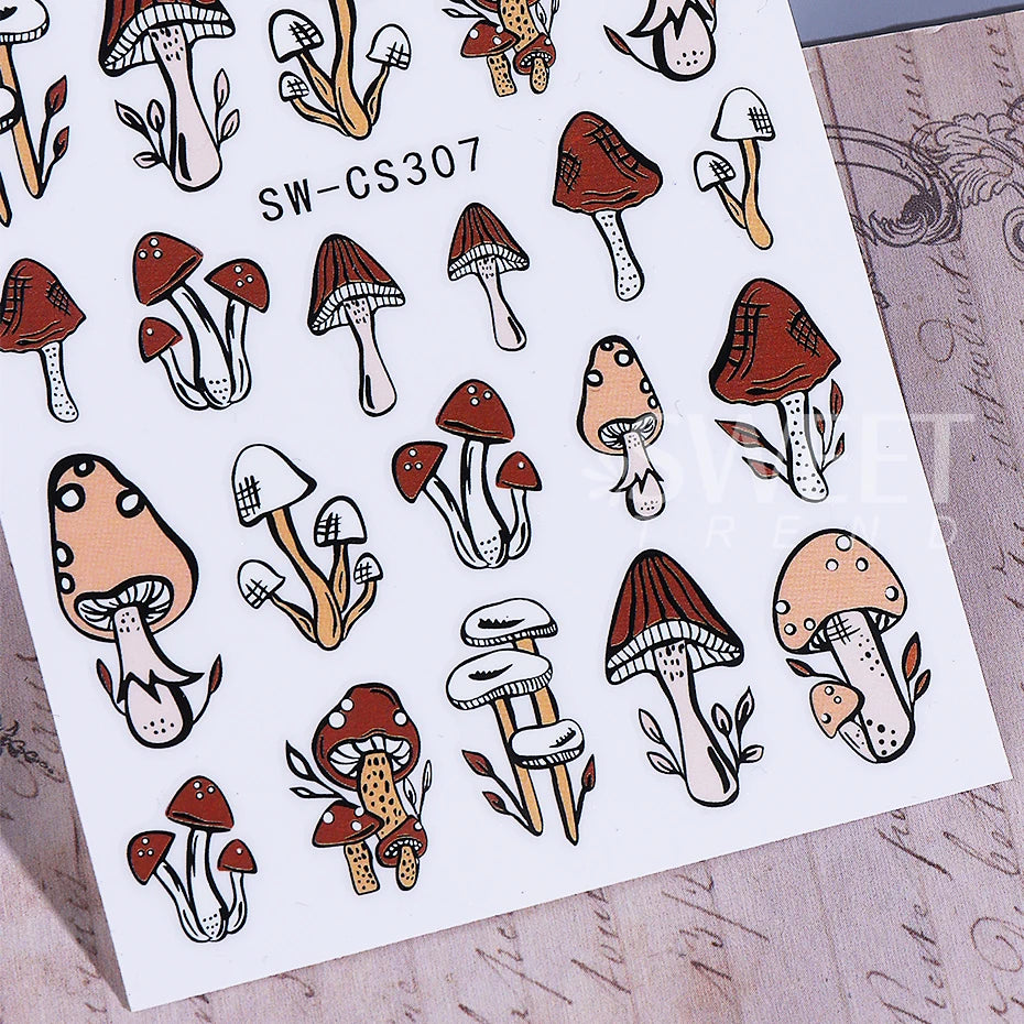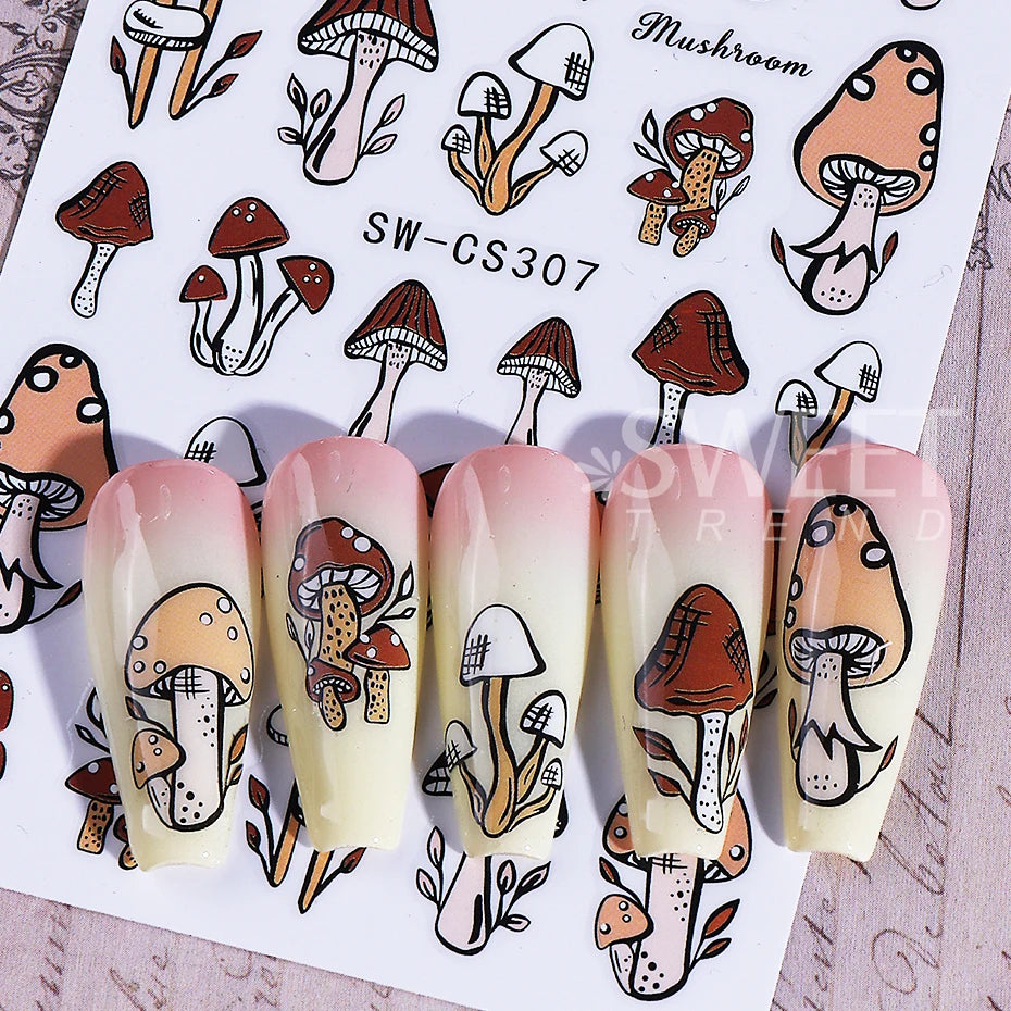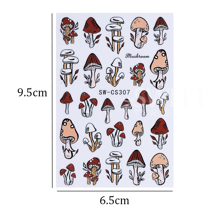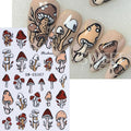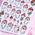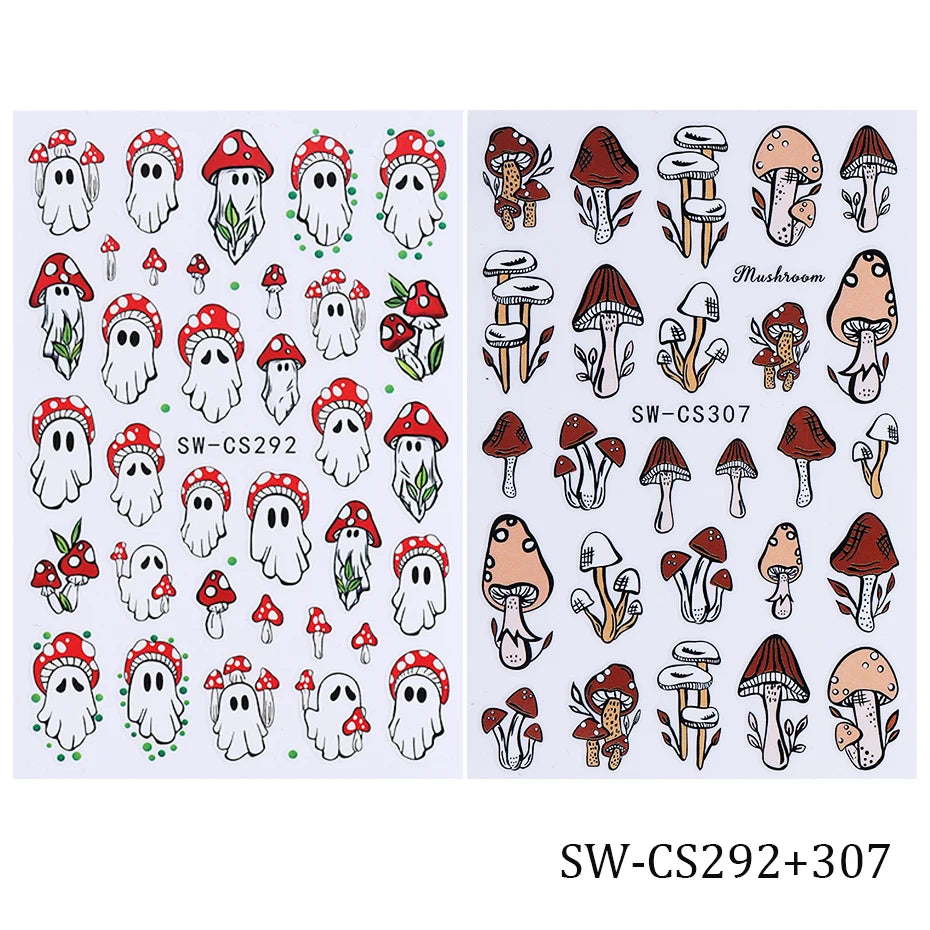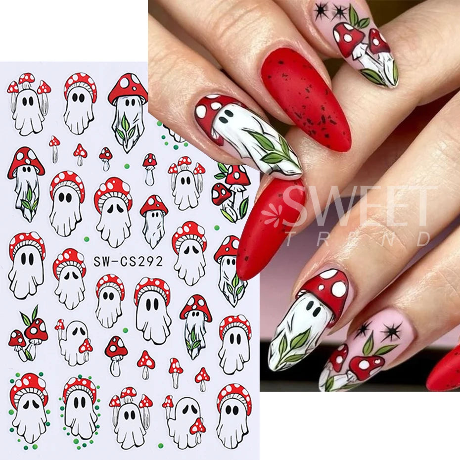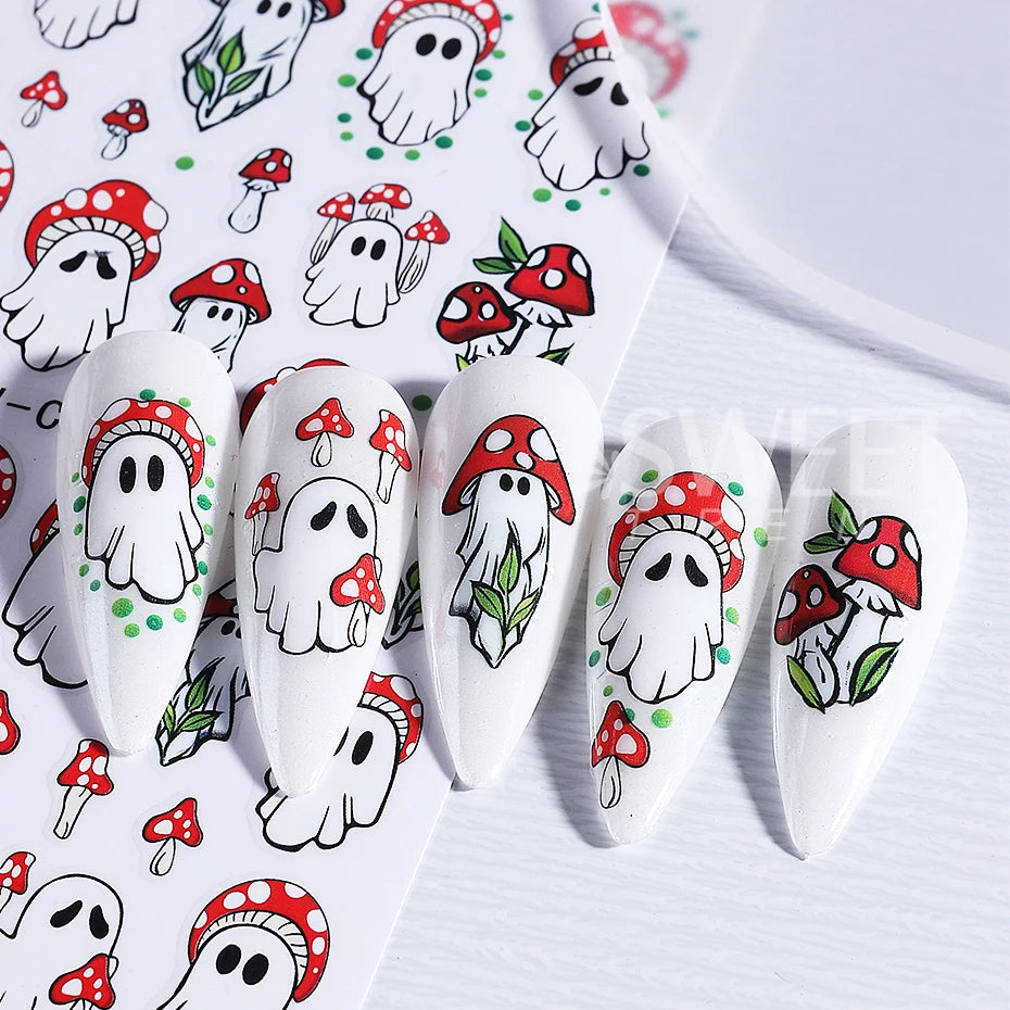 2pcs Halloween Nail Art Stickers | 3D Cartoon Cute Mushroom Ghost Leaf Design Manicure Decoration