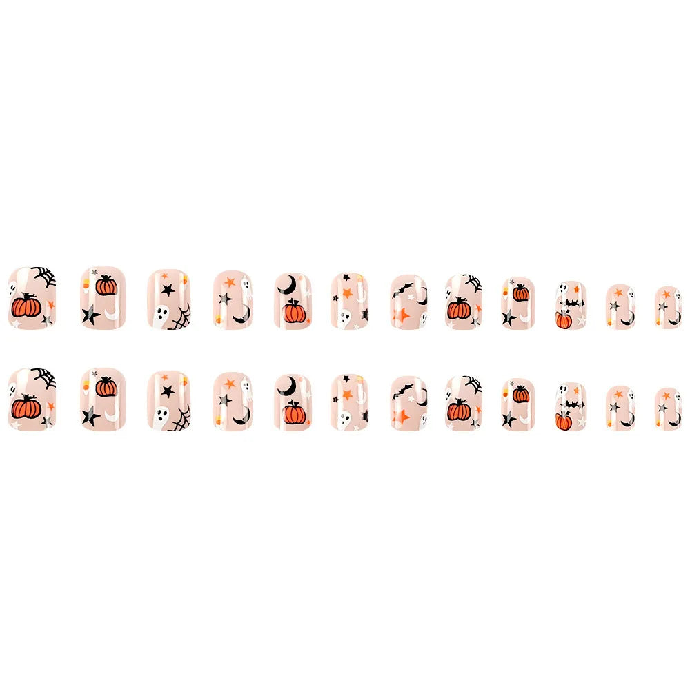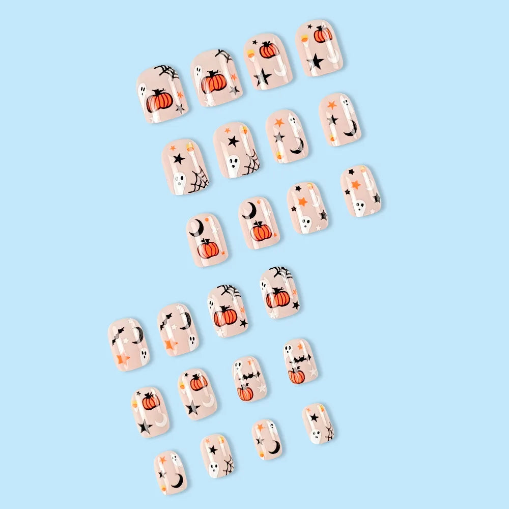 24 Halloween Nail Designs Pumpkin | Gradient Artifical Reusable False Nail Jelly Tabs
