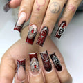 24 Halloween Spider Nails | French Coffin Ballet Fake Nail Wearable Full Cover Artificial Nail