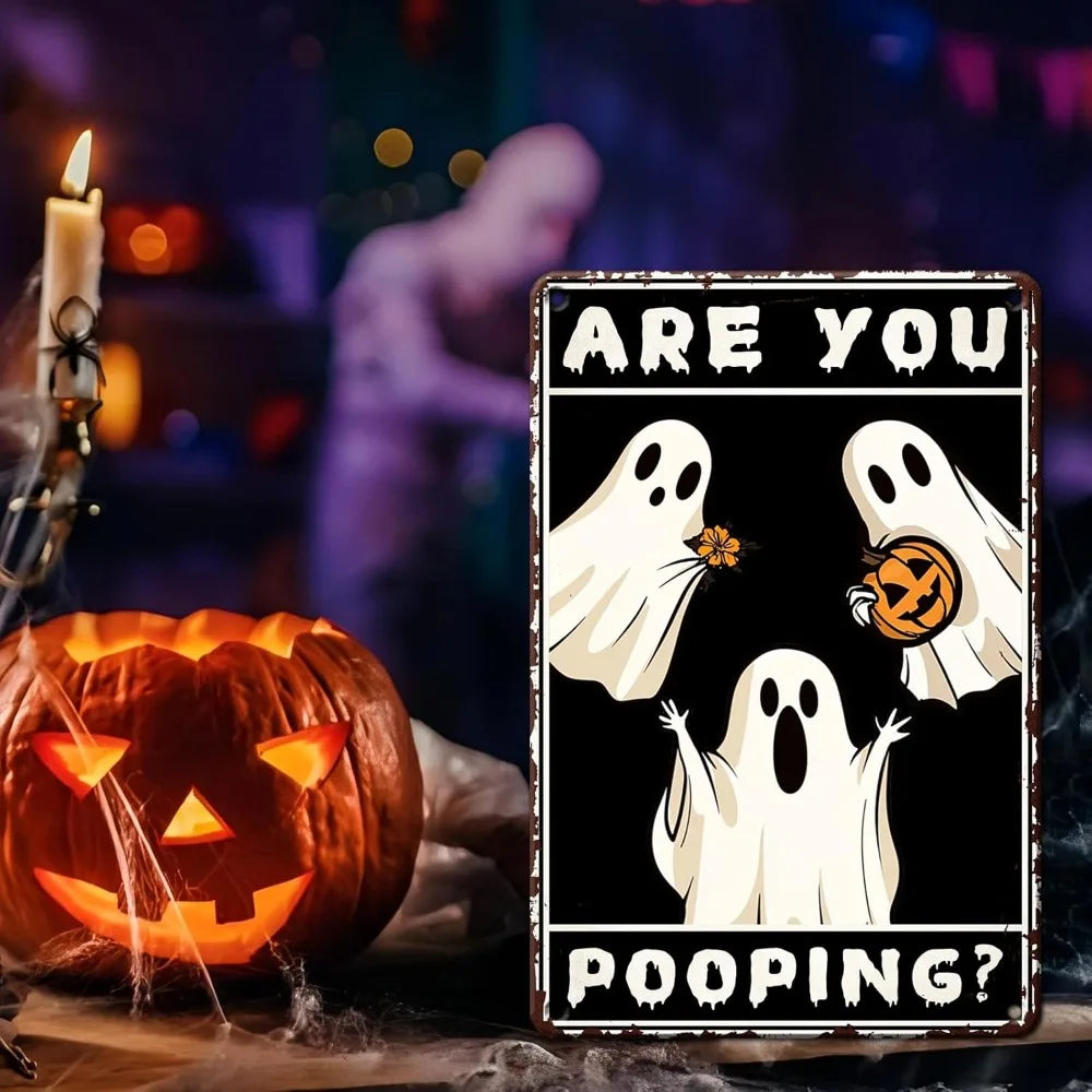 Ghost Metal Tin Sign - Halloween Wall Decor Ideas | Rustic Bathroom Art