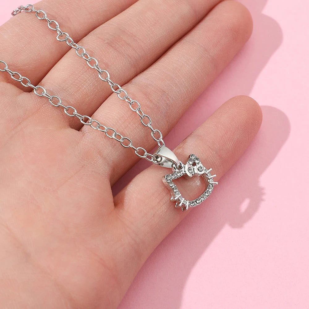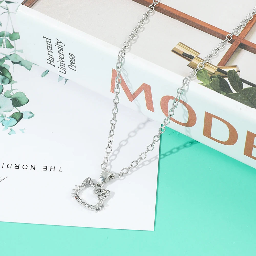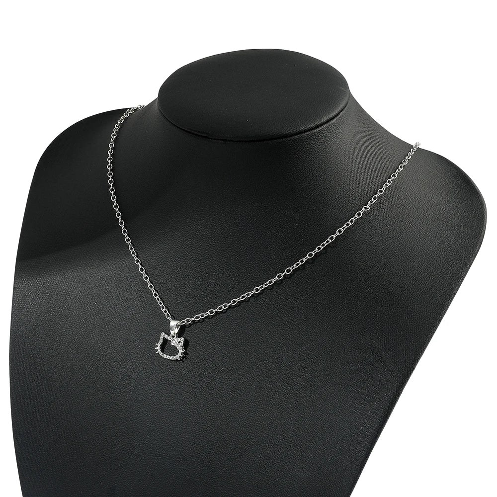 Hello Kitty Pendant Necklace | Girls Jewelry Cute Clavicle Chain Fashion Women's Rhinestone Necklace