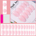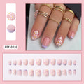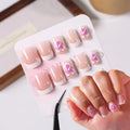 24Pcs French Flower False Nails Pink Hibiscus Design Full Cover Press On Nail Wearable Artificial Fake Fingertips for Women&Gril