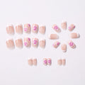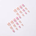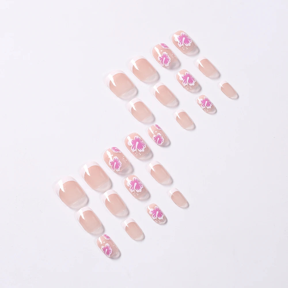 24Pcs French Flower False Nails Pink Hibiscus Design