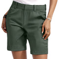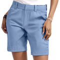 Women Comfortable Casual Straight High Elastic Twill Shorts With Pockets