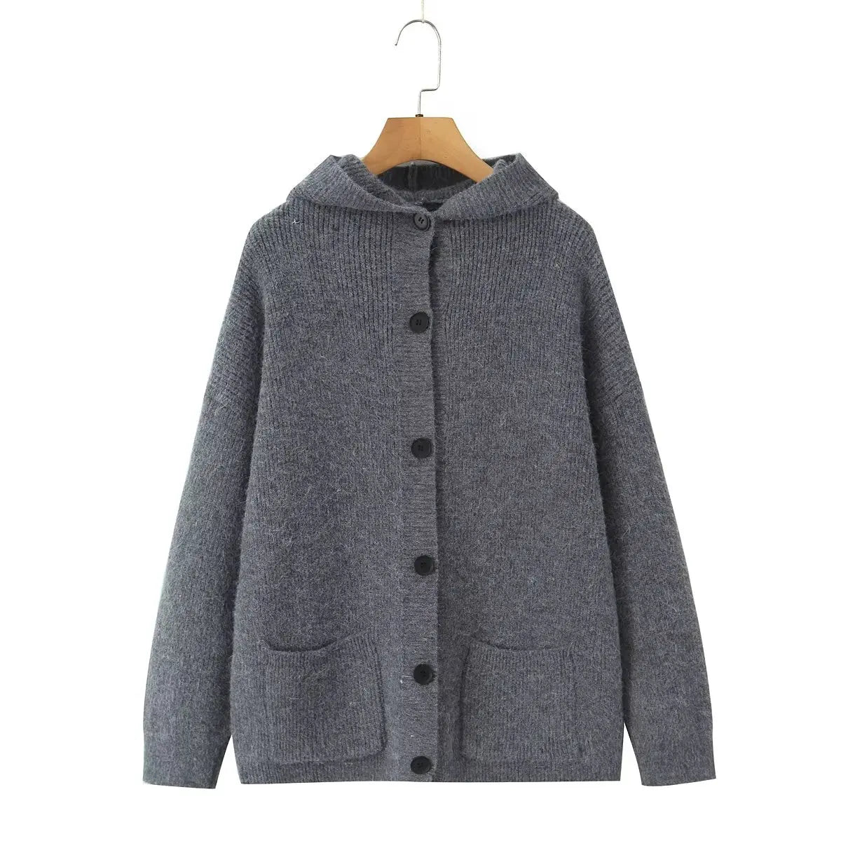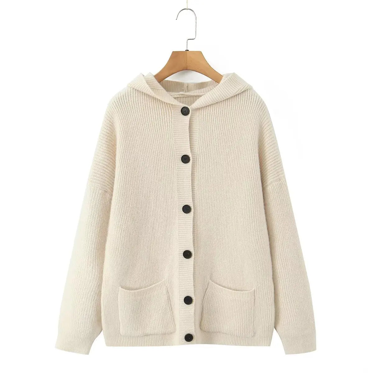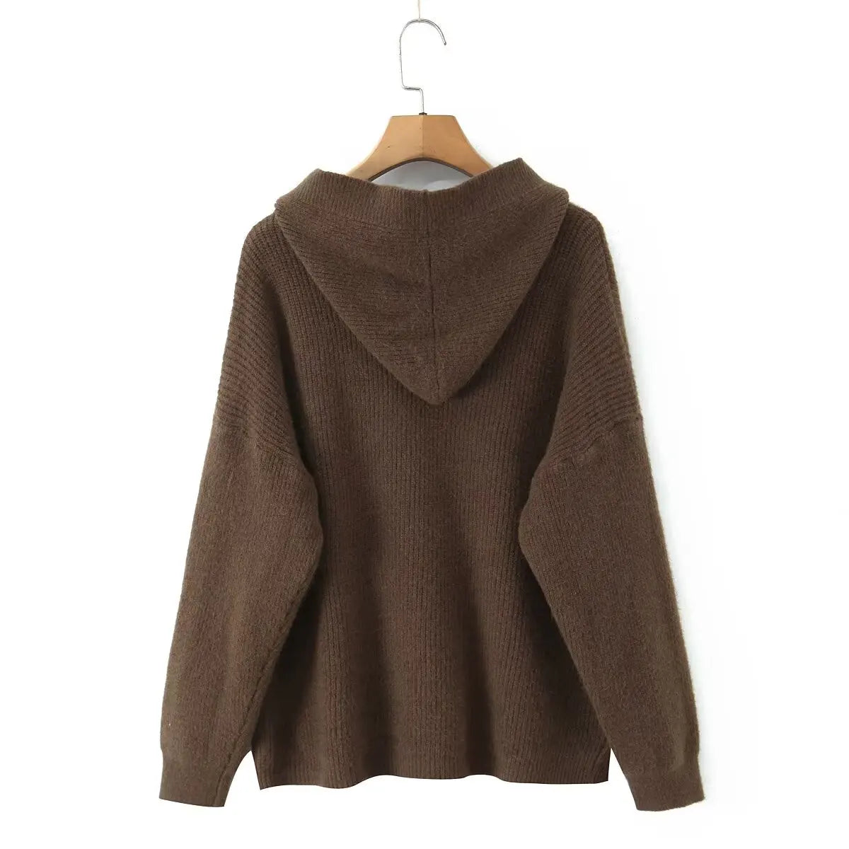 Hooded Cardigan Sweater | New Solid Color Hooded Knitted Cardigan | Retro Long Sleeve